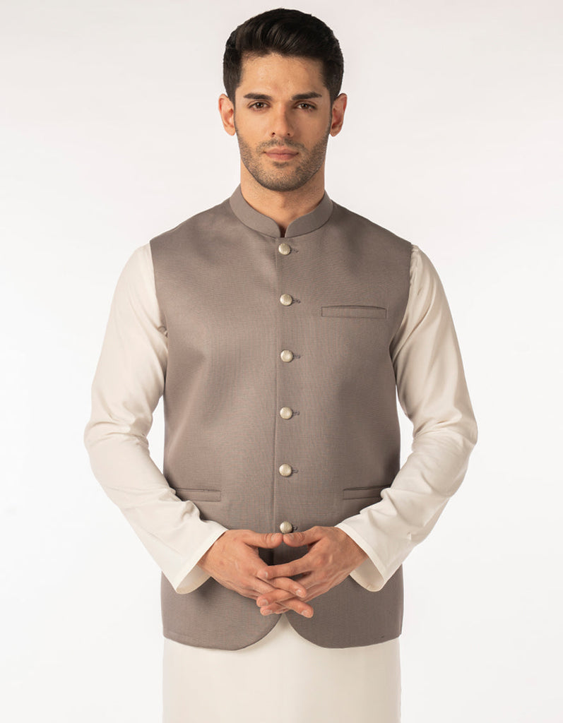STONE GREY SUITING WAISTCOAT | JJVC-A-48240/S25/JJ10125-PN