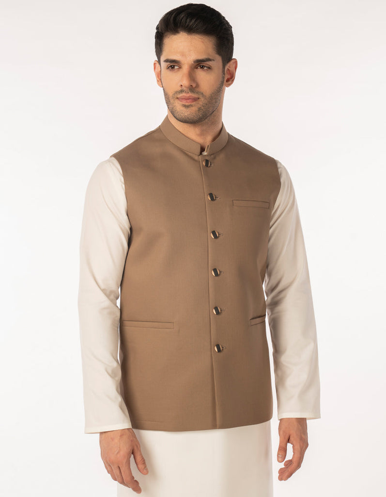BROWN SUITING WAISTCOAT | JJVC-A-48243/S25/JJ10130-PN