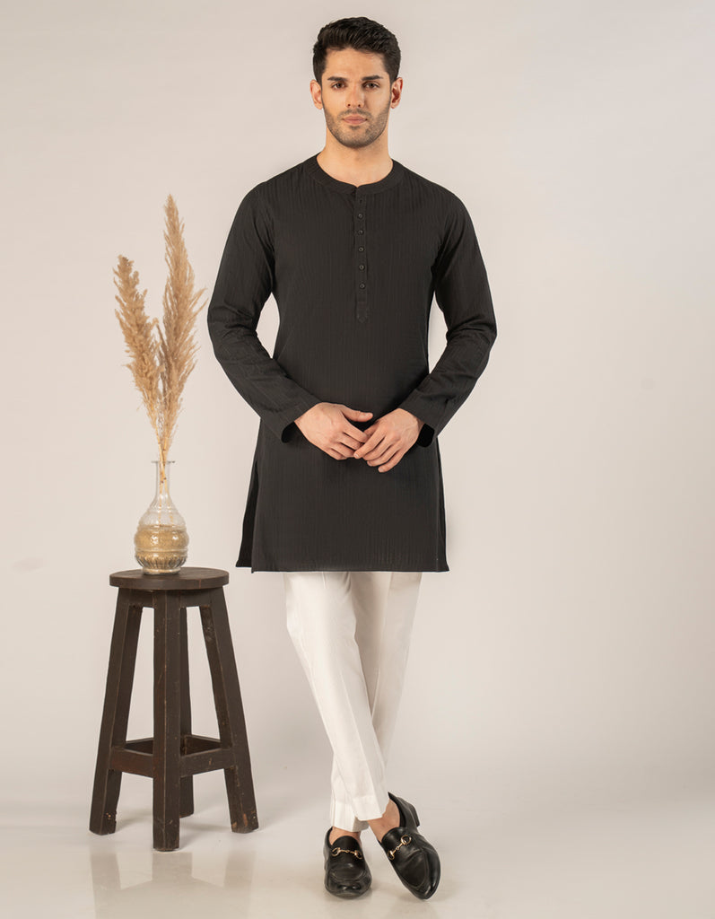 BLACK COTTON SHORT KURTA | JJTHLK-A-47434/S25/JJ10175-CL