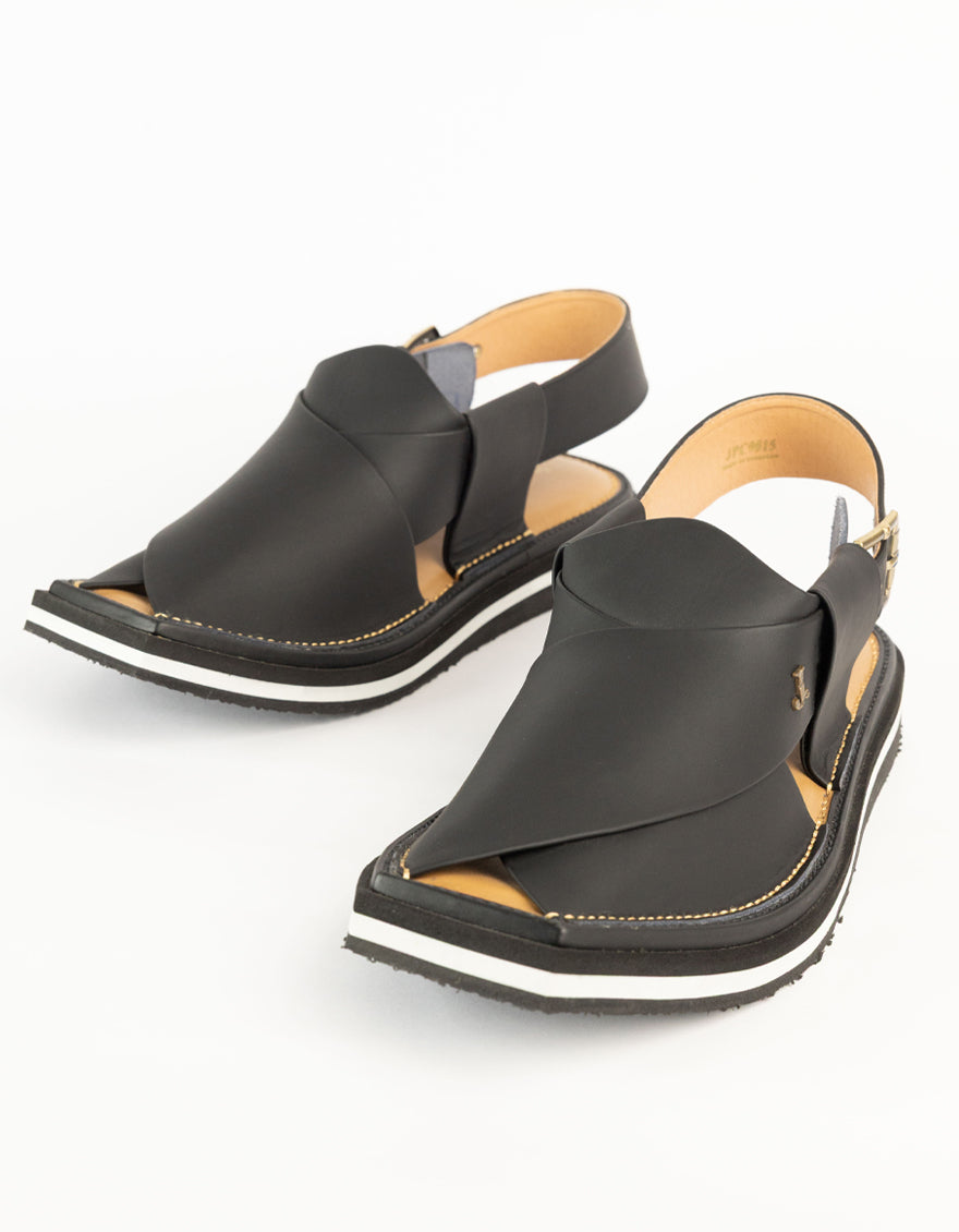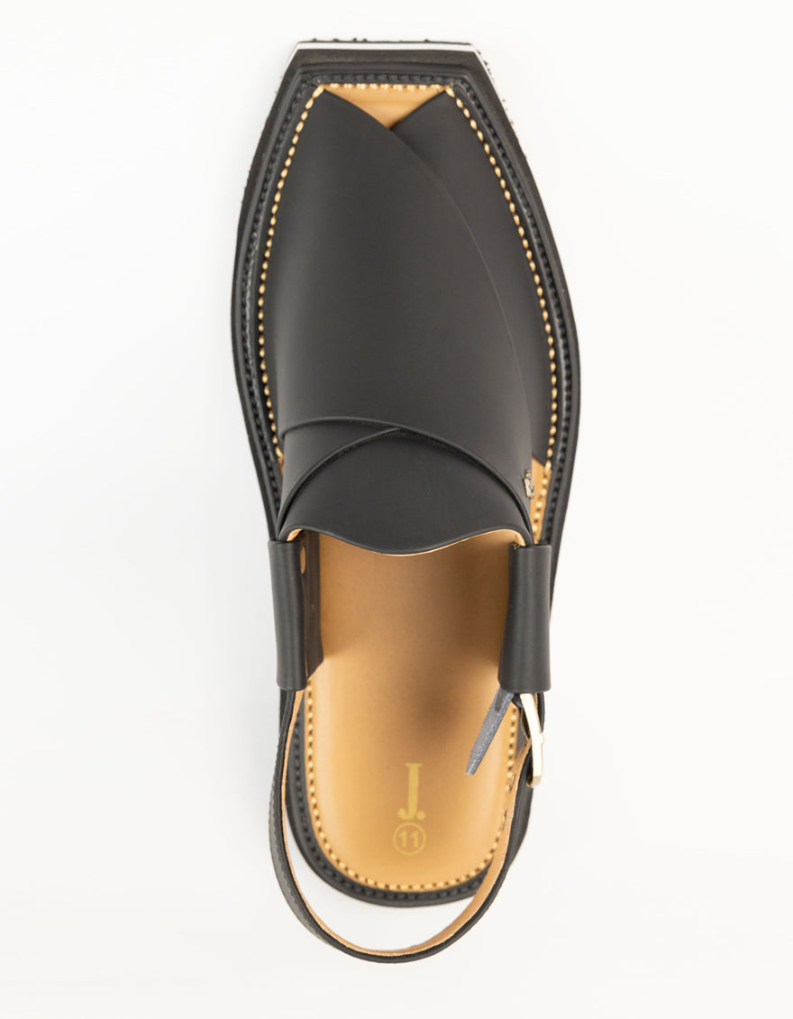 MATT BLACK PLAIN PESHAWARI SANDALS | JJFW-JPC-9015/S25-SC-PLN