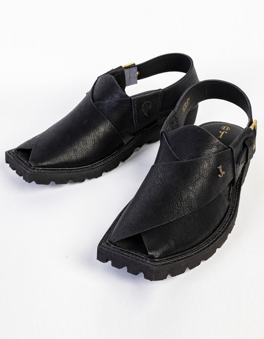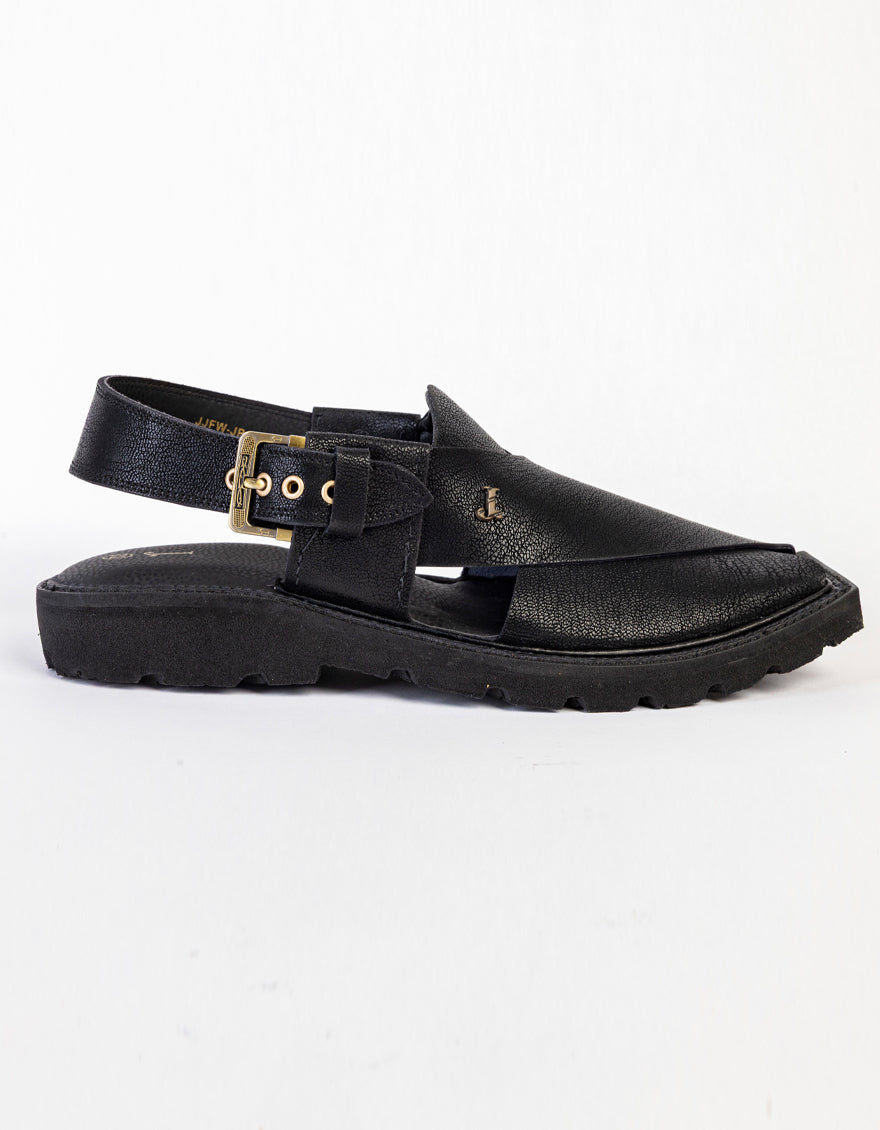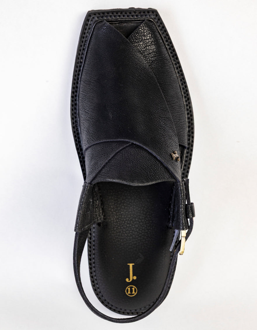 MATT BLACK PESHAWARI SANDALS | JJFW-JPC-037-PU/S25-ZA-PLN