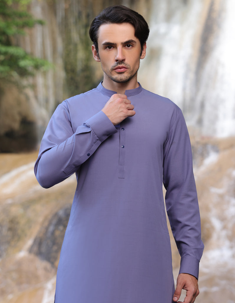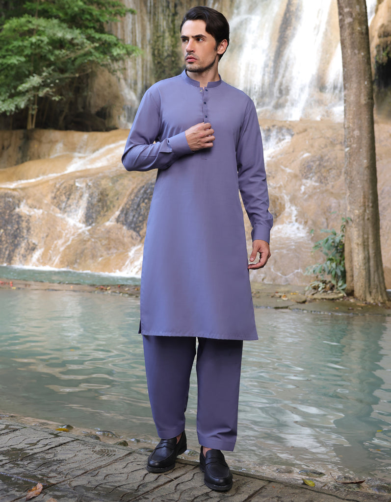 This basic men's Purple Blended Casual Kameez Shalwar epitomizes effortless sophistication and classic charm, making it a wardrobe staple for various cultural and casual events.