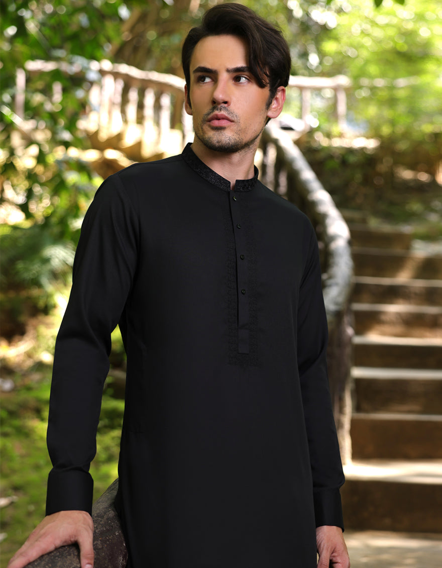 With subtle detailing and a refined silhouette, this Black Blended Semi-Formal Kameez Shalwar embodies understated elegance, perfect for semi-formal gatherings and events.