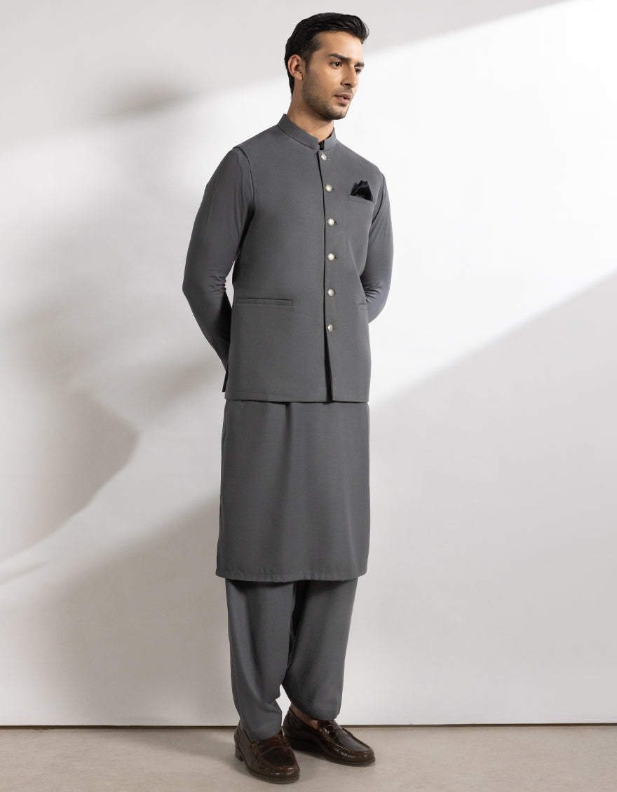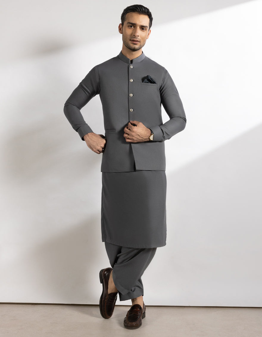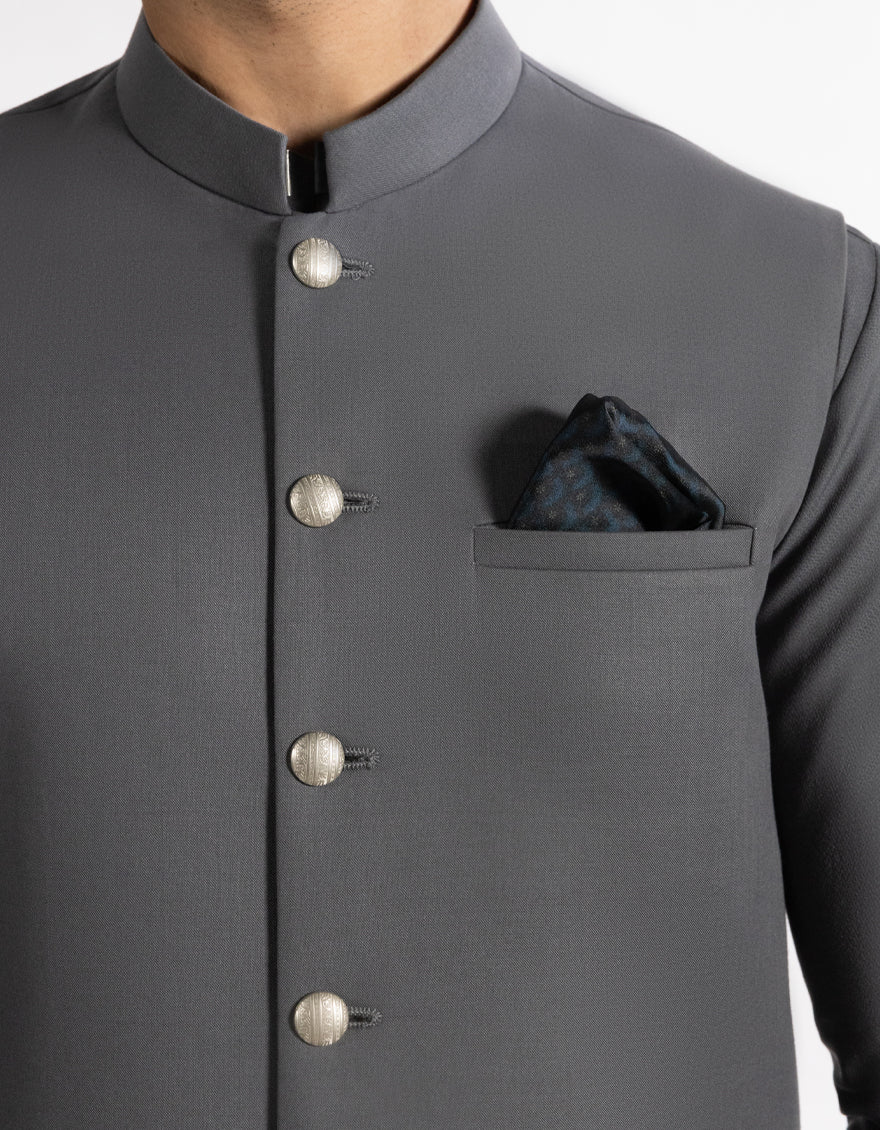 STEEL GREY SUITING WAISTCOAT | JJVC-A-48247/S25/JJ10131-PN