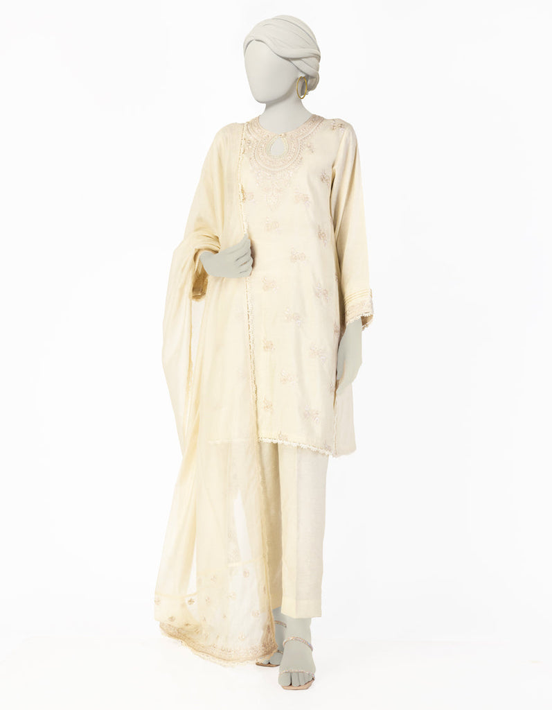 OFF WHITE CAMBRIC 3PC UNSTITCHED | JJLS-W-JW-24-1748 FB