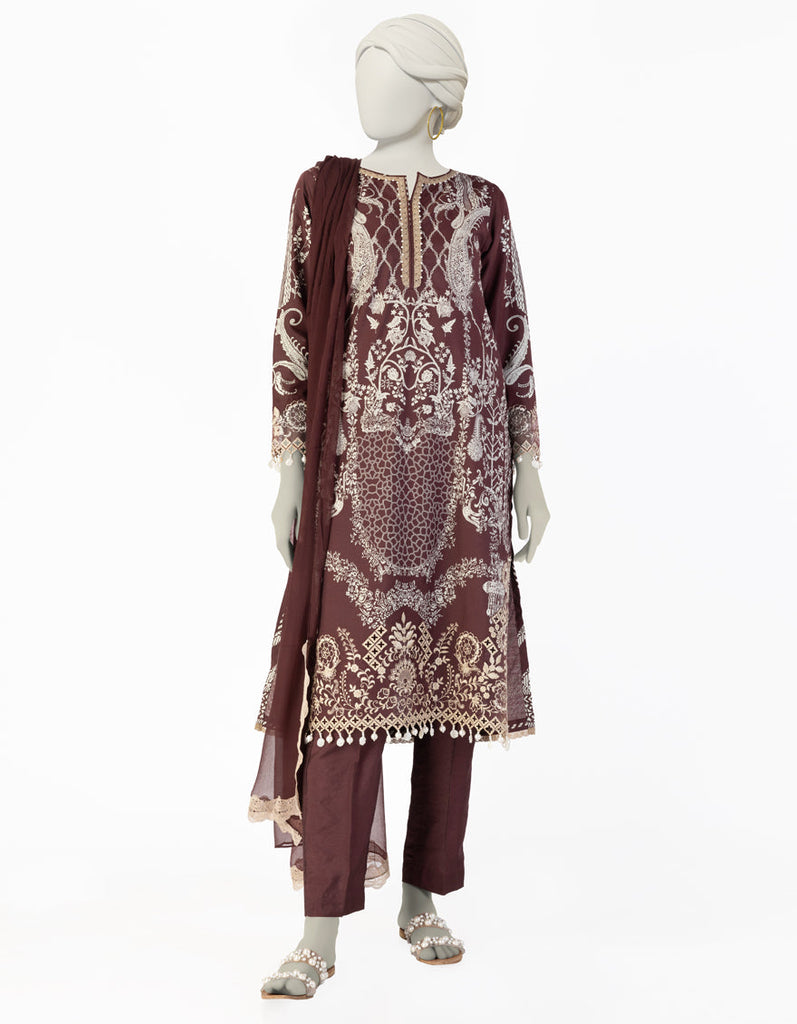 BROWN CAMBRIC 3PC UNSTITCHED | JJLS-W-JW-24-1746 FB