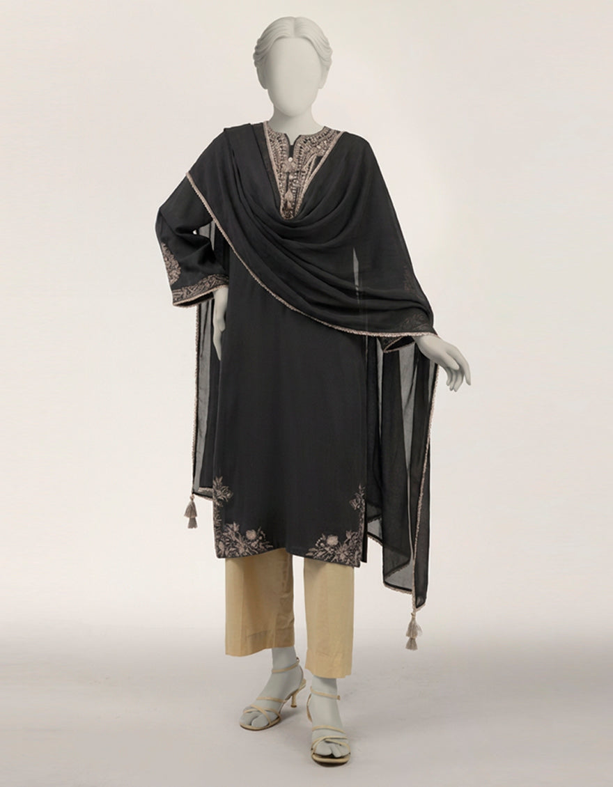 BLACK DOBBY 2PC STITCHED | JLAWN-S-JDS-26-1278/S CHIKENKARI-04