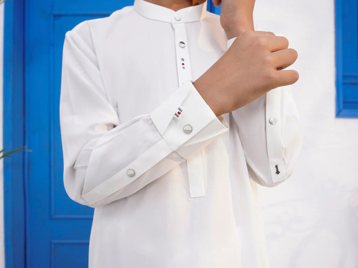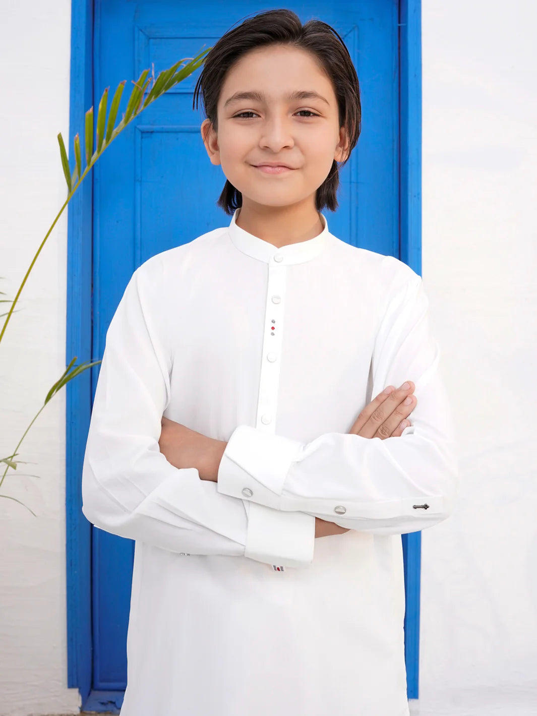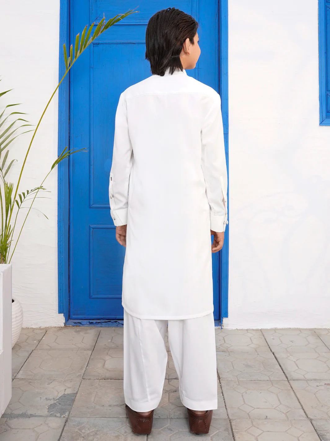 Kameez Shalwar With Intricate Cut & Sew and Embroidery Accents on the Cuffs, Back Yoke, Inner and Outer Placket