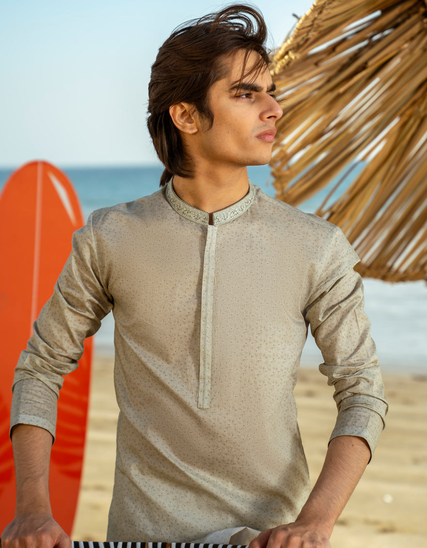 Explore our latest teen boys' Light Green Cotton Kurta, designed with a blend of classic simplicity and Eastern charm. These kurtas offer a stylish yet understated look, suitable for a variety of occasions.