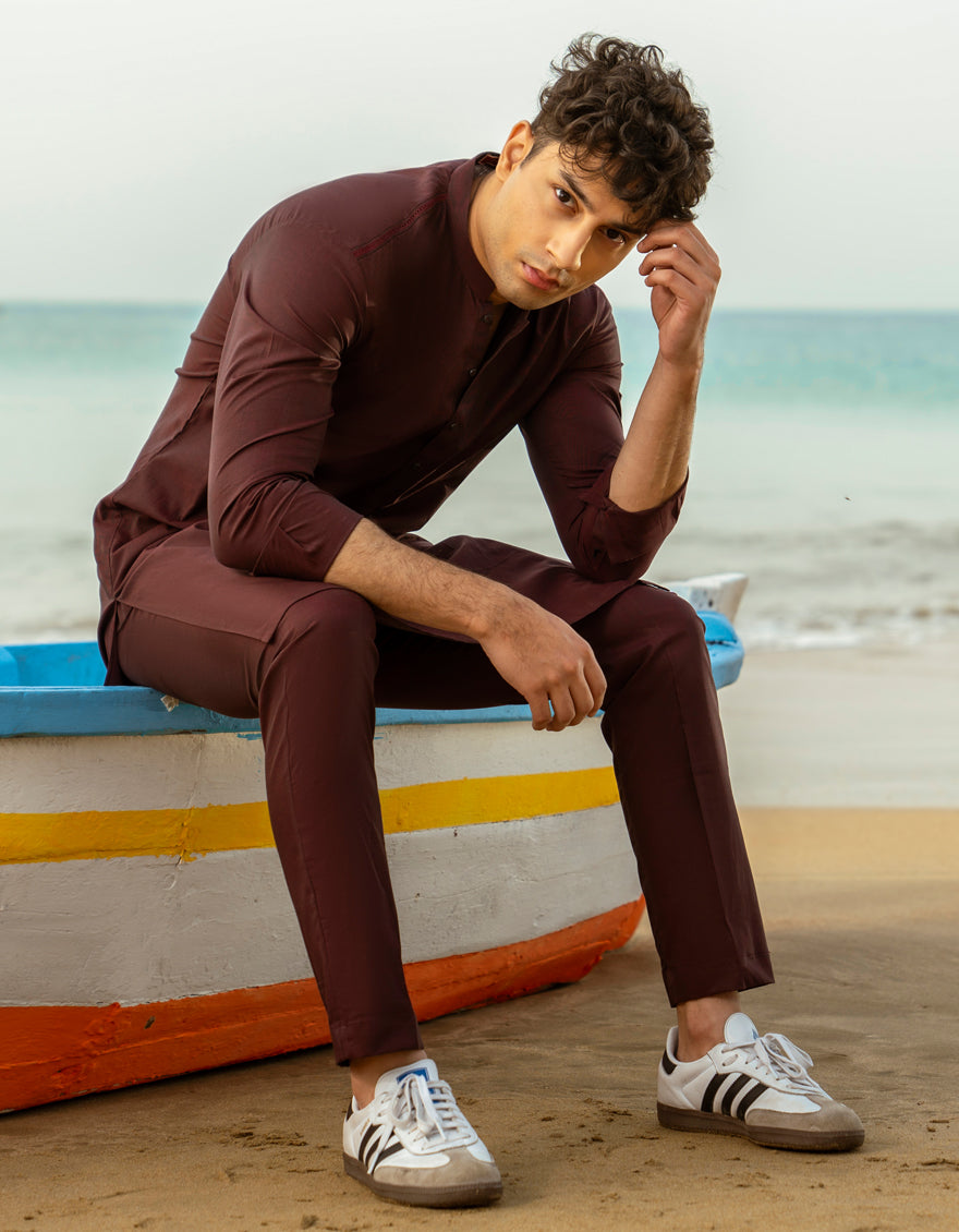Designed with the young gentleman in mind, this maroon cotton casual kurta trousers exudes charm and sophistication. Its classic yet stylish look offers versatility, perfect for both casual and formal occasions.