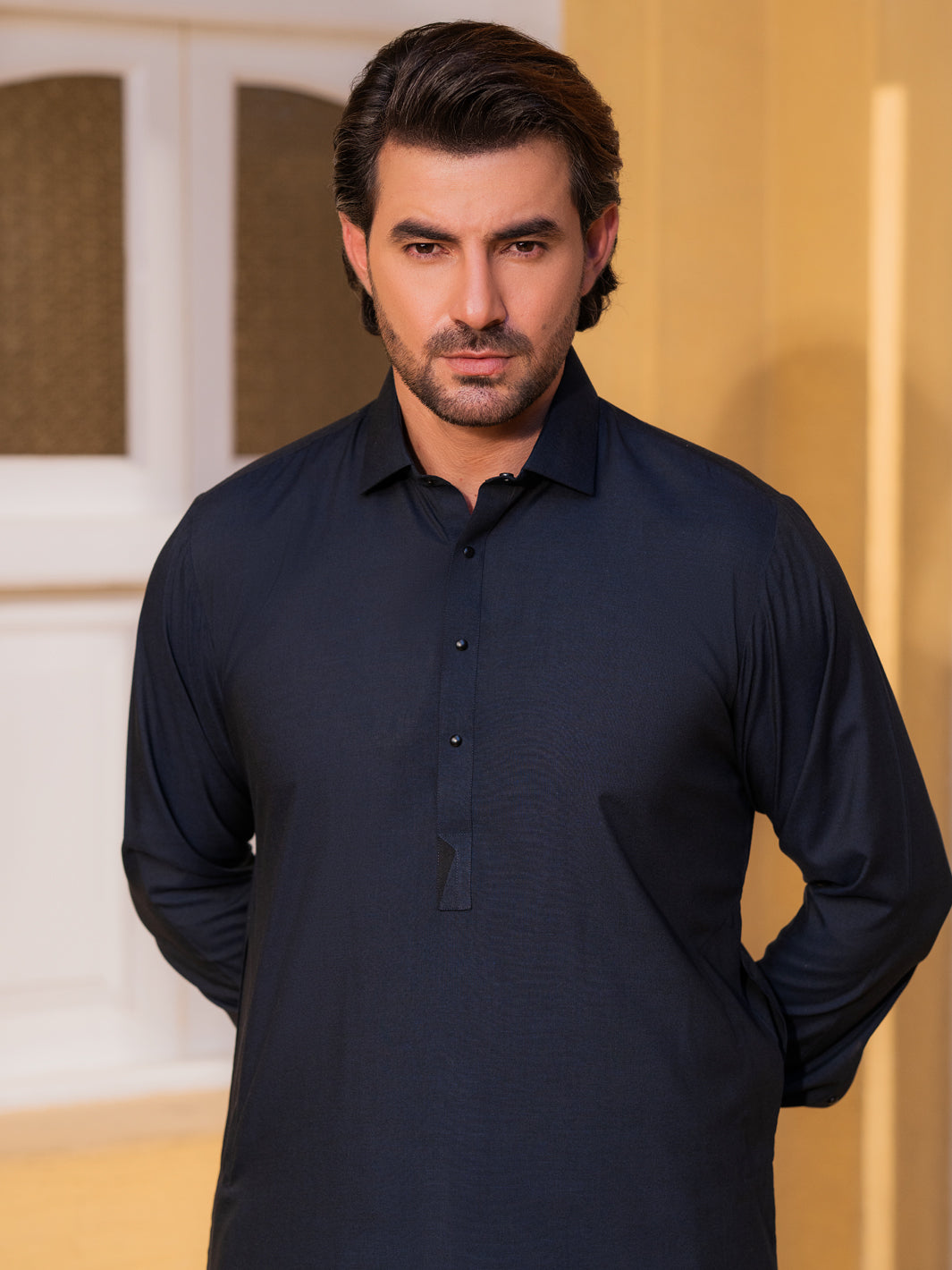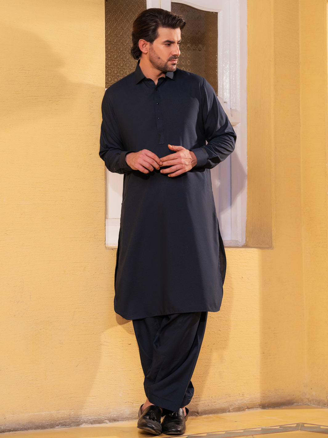 Classic fit kameez shalwar finely tailored with exceptional patch details and premium quality buttons