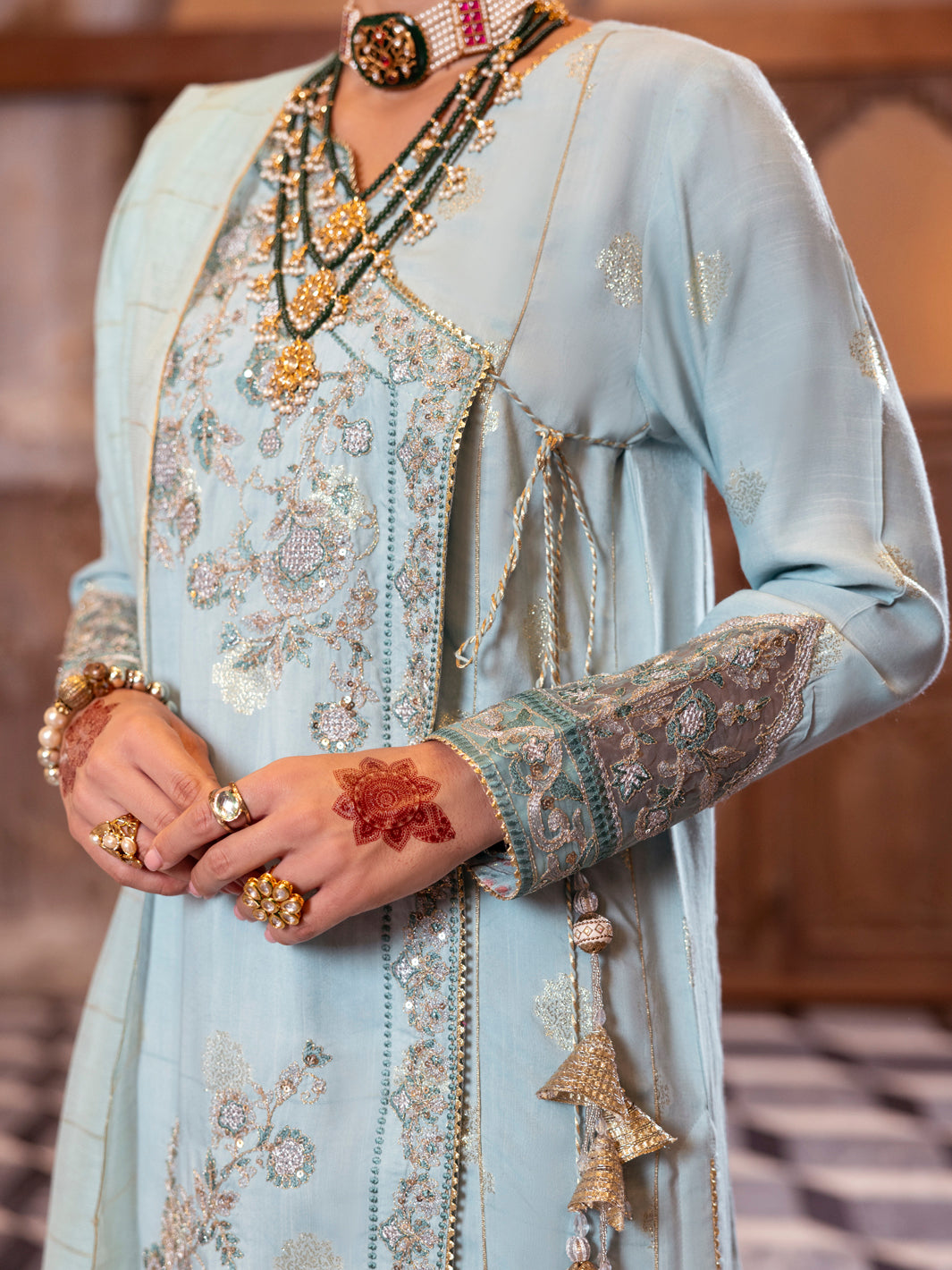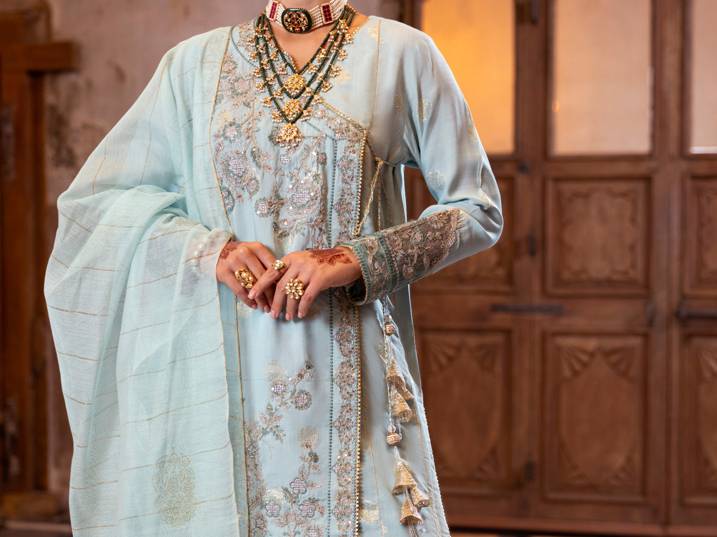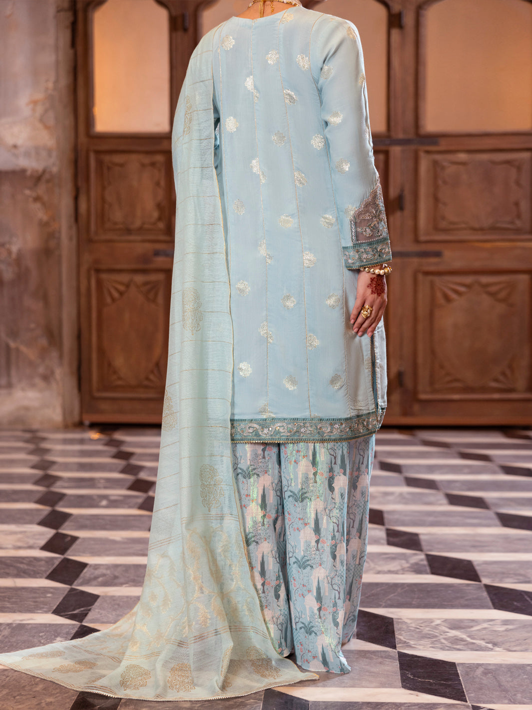 Ice Blue Viscose Lurex Formal 3 Piece Stitched