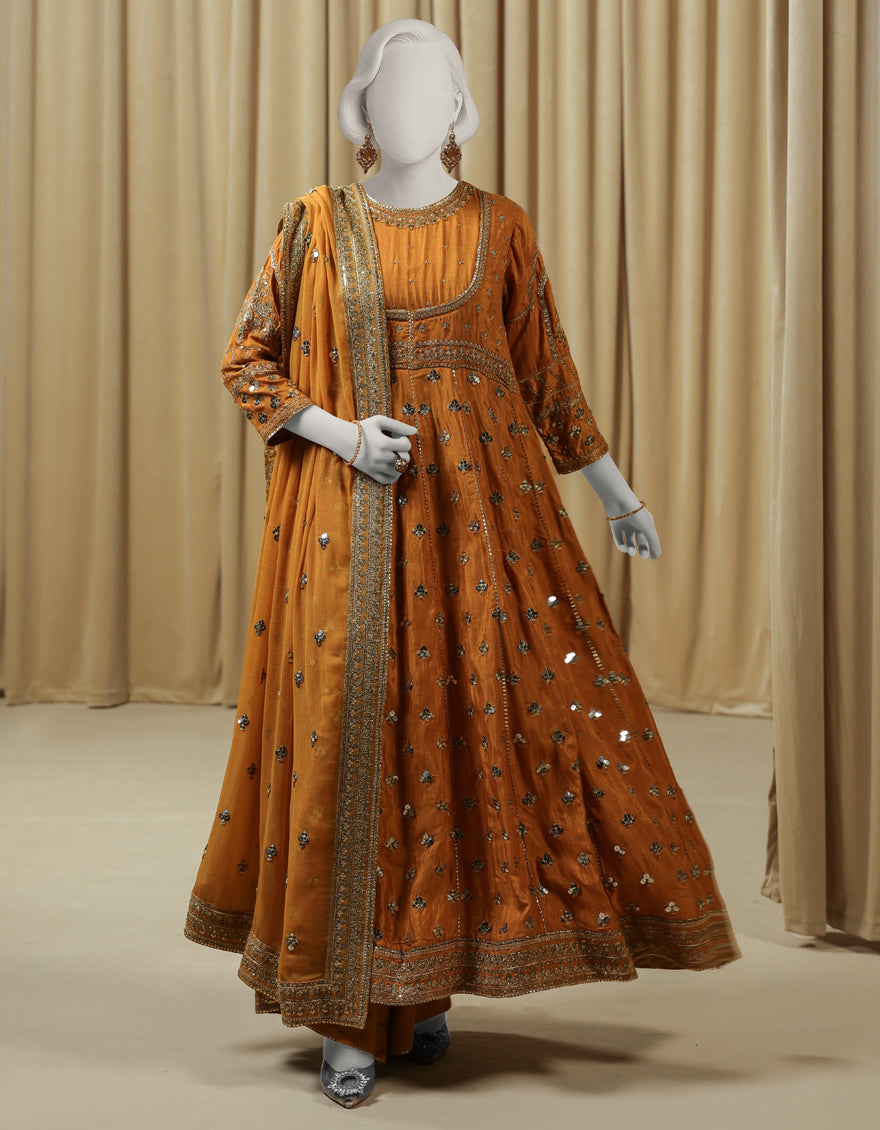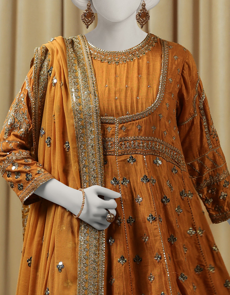 OCHRE RAW SILK 3PC STITCHED | JJPW-S-JPS-25-3976 FB/INARA-14