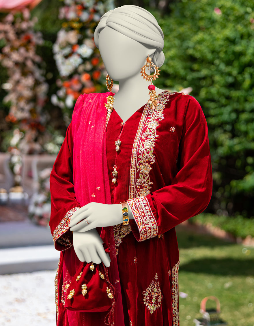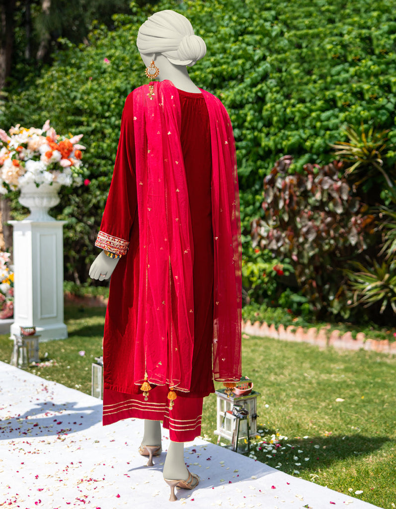 MAROON VELVET 3PC STITCHED | JJPW-W-JPS-24-3964 F