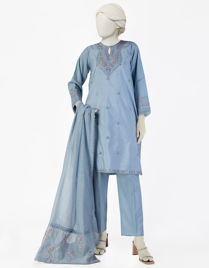 BLUE COTTON SILK 3PC STITCHED | JLAWN-S-25-092/S GRA