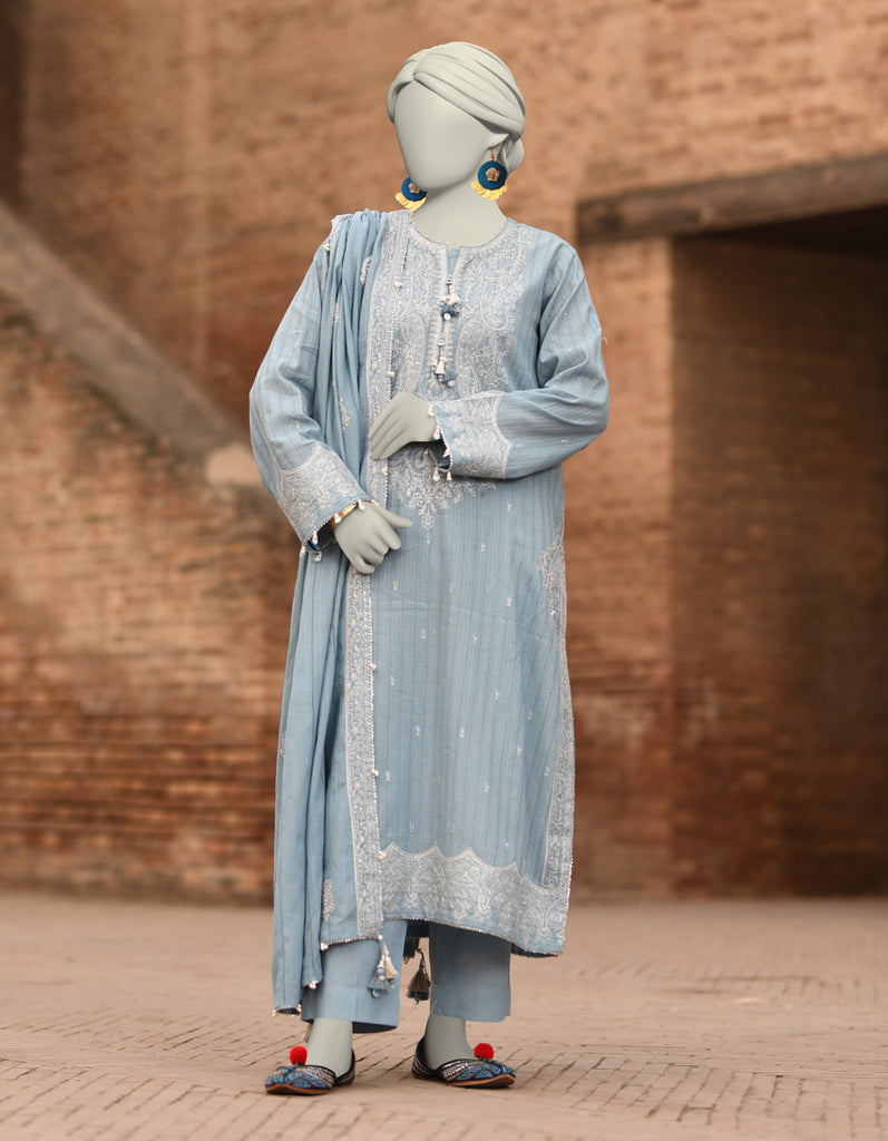 BLUE SLUB 3PC UNSTITCHED | JJLS-W-JW-24-1728 FB