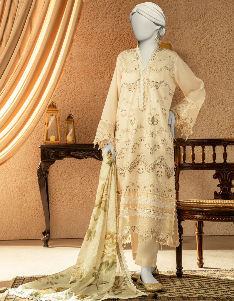 OFF WHITE CAMBRIC 3PC UNSTITCHED | JJLS-W-JW-24-1748 FB