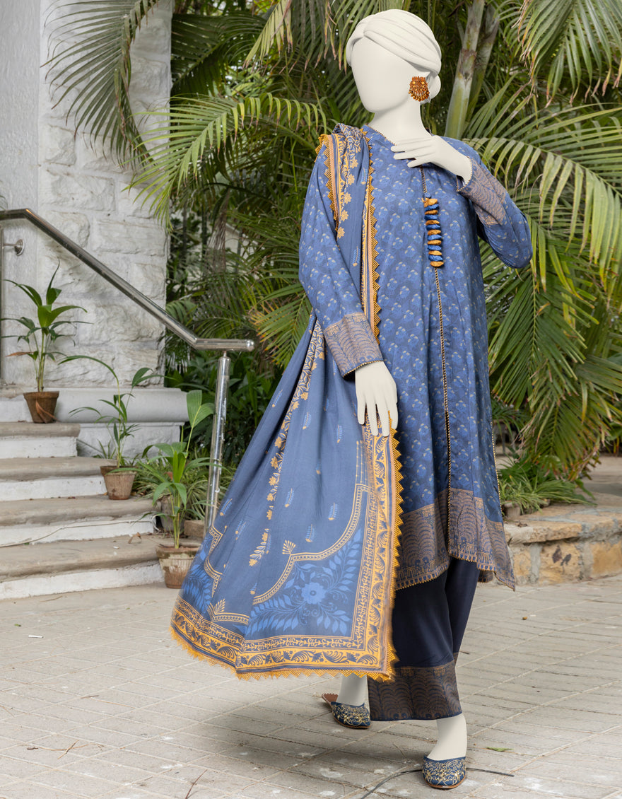 BLUE VISCOSE 3PC UNSTITCHED | JJLS-S-JPWU-24-048 F
