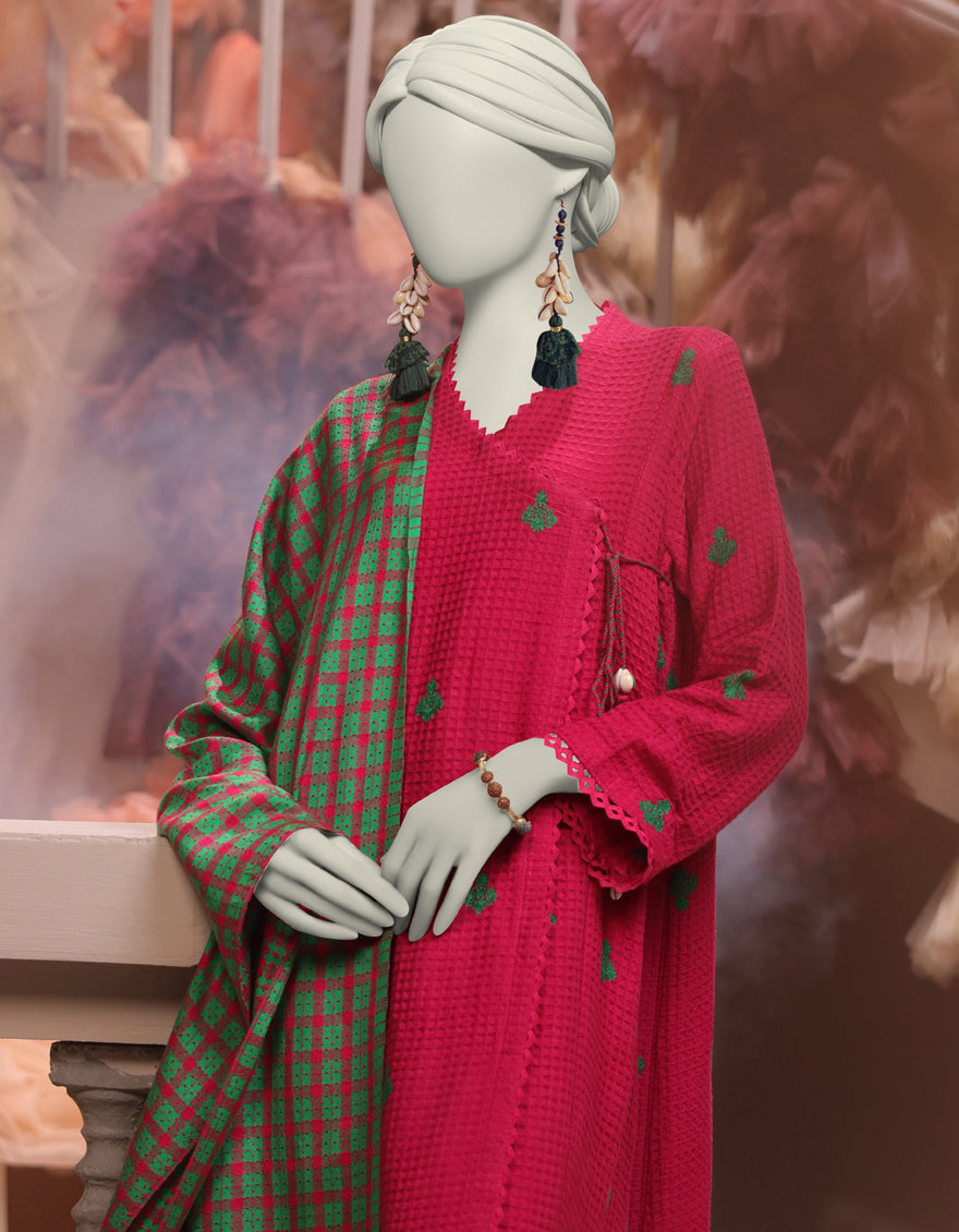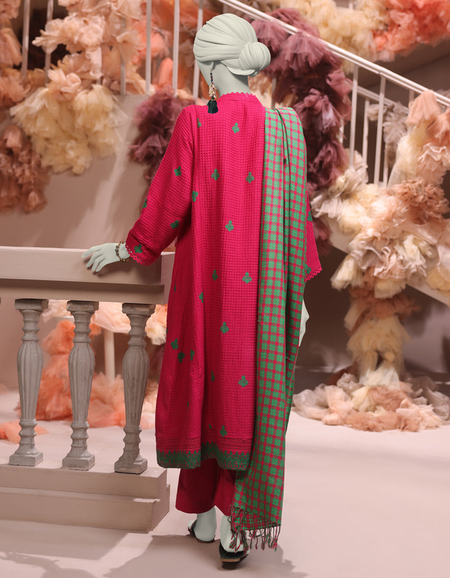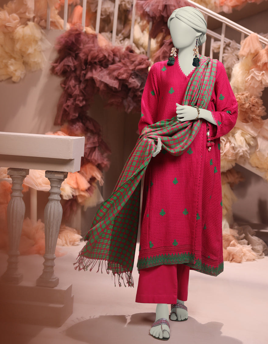 PINK JACQUARD 3PC UNSTITCHED | JJLS-W-JWU-24-1717 F