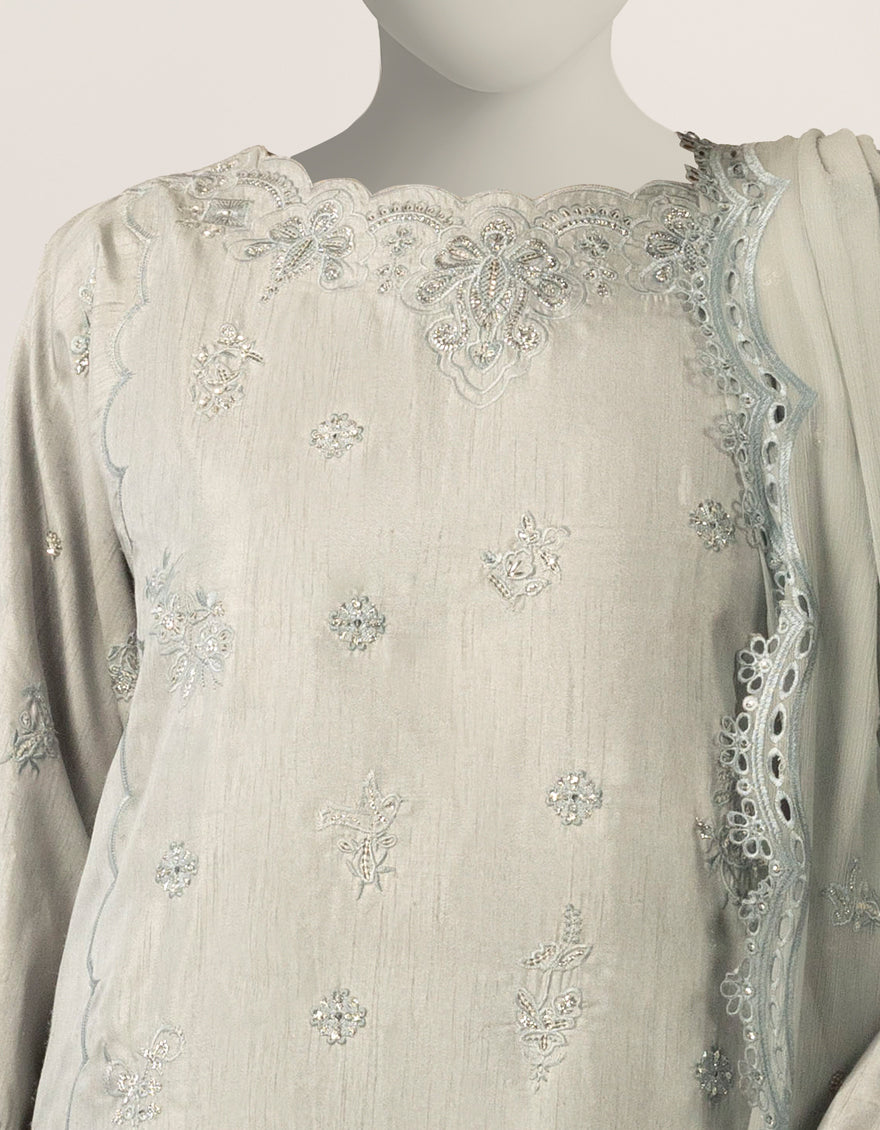 GREY RAW SILK 3PC STITCHED | JJPW-S-JPS-26-4028 FB/INARA-12