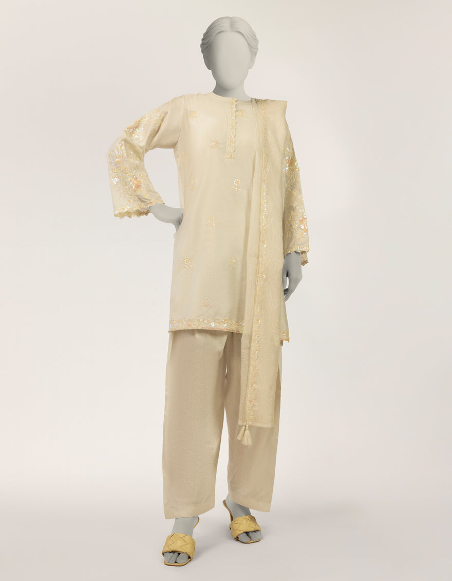 OFF WHITE COTTON SILK 3PC STITCHED | JLAWN-S-26-482/S 3D BLING-1