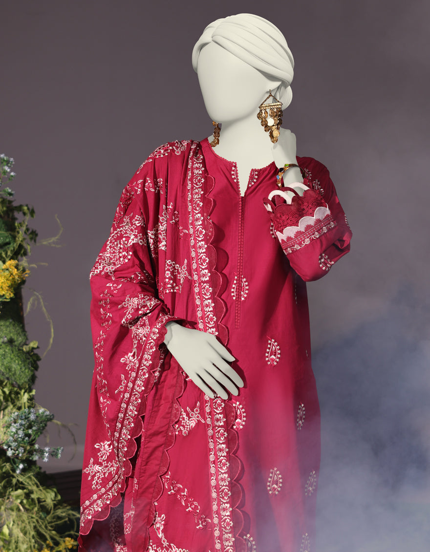 MAROON CAMBRIC 3PC STITCHED | JJPW-W-JW-24-1745 FB