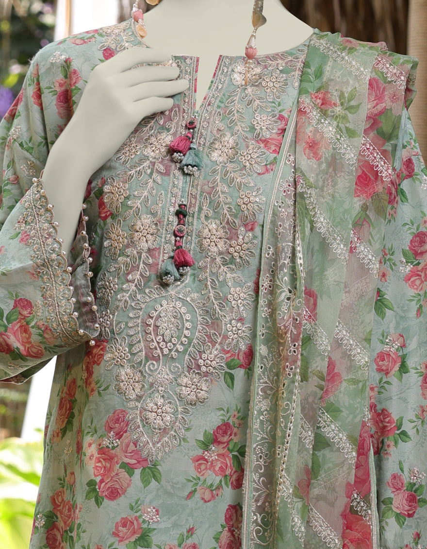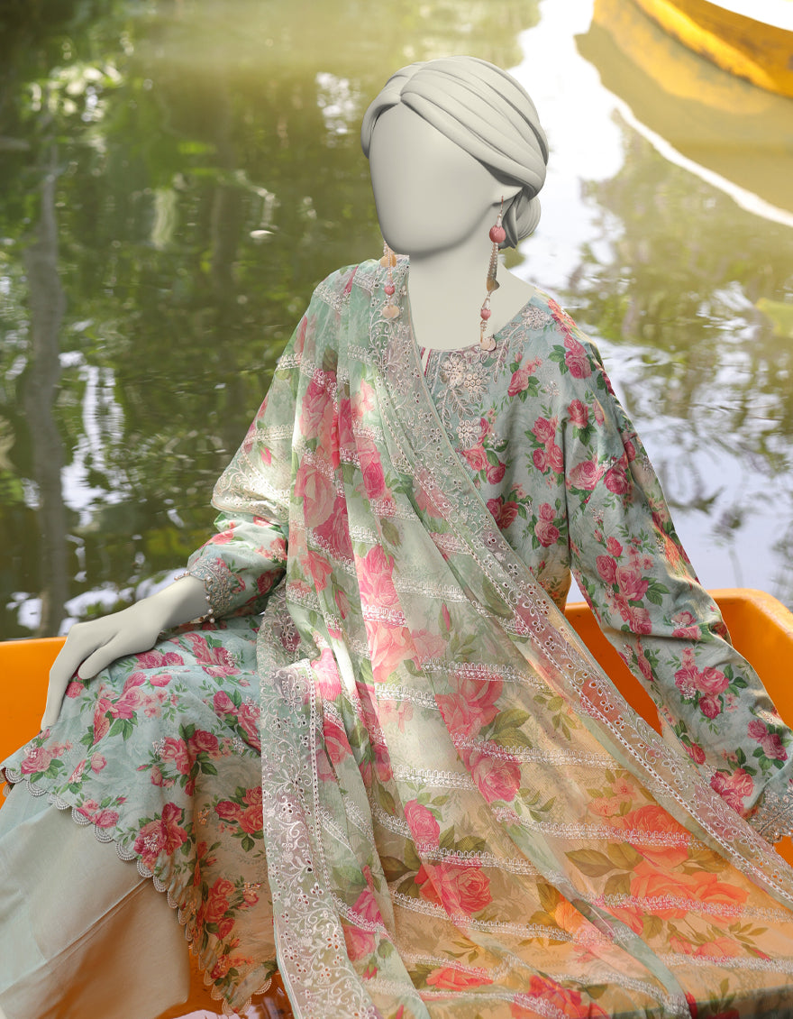 GREEN LAWN 3PC UNSTITCHED | JLAWN-S-25-843 FLORI