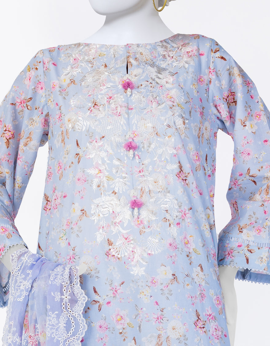 BLUE LAWN 3PC UNSTITCHED | JLAWN-S-25-844 FLORI
