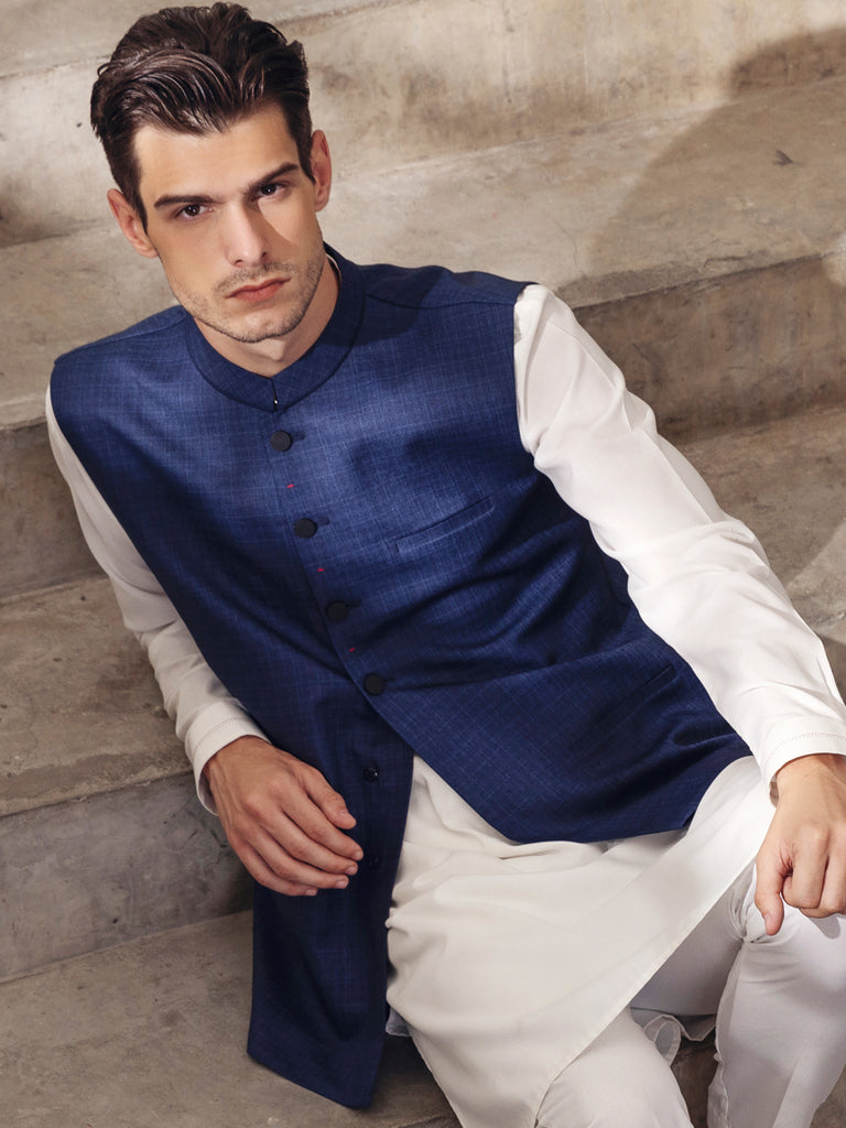 BLUE TAFLON RAYON WAISTCOAT | AL-WC-AU-401/AM-5037D