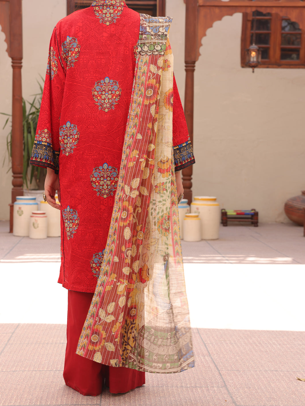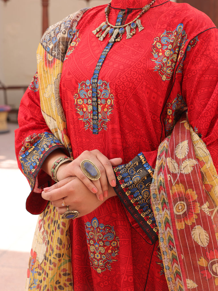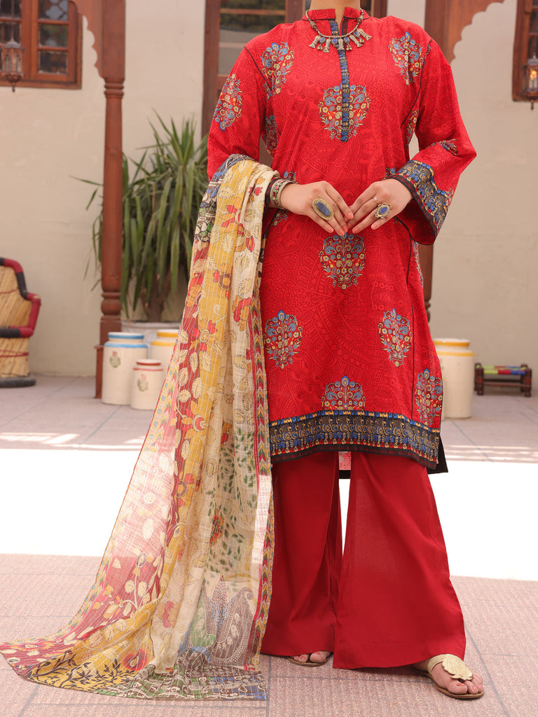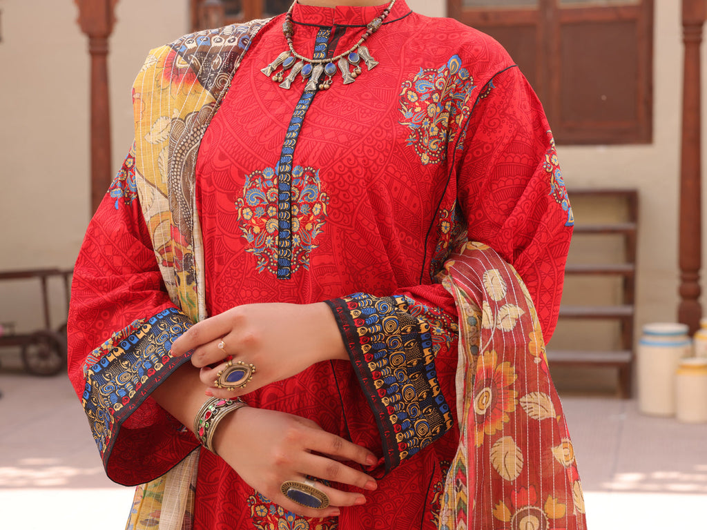 RED LAWN 3PC UNSTITCHED | ALP-3PS-AU-1606 FB-1606A