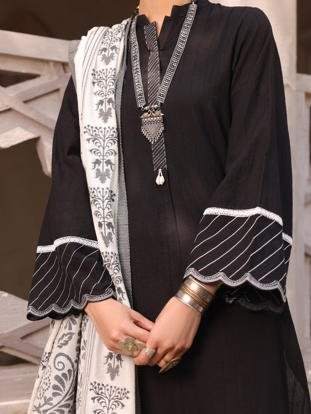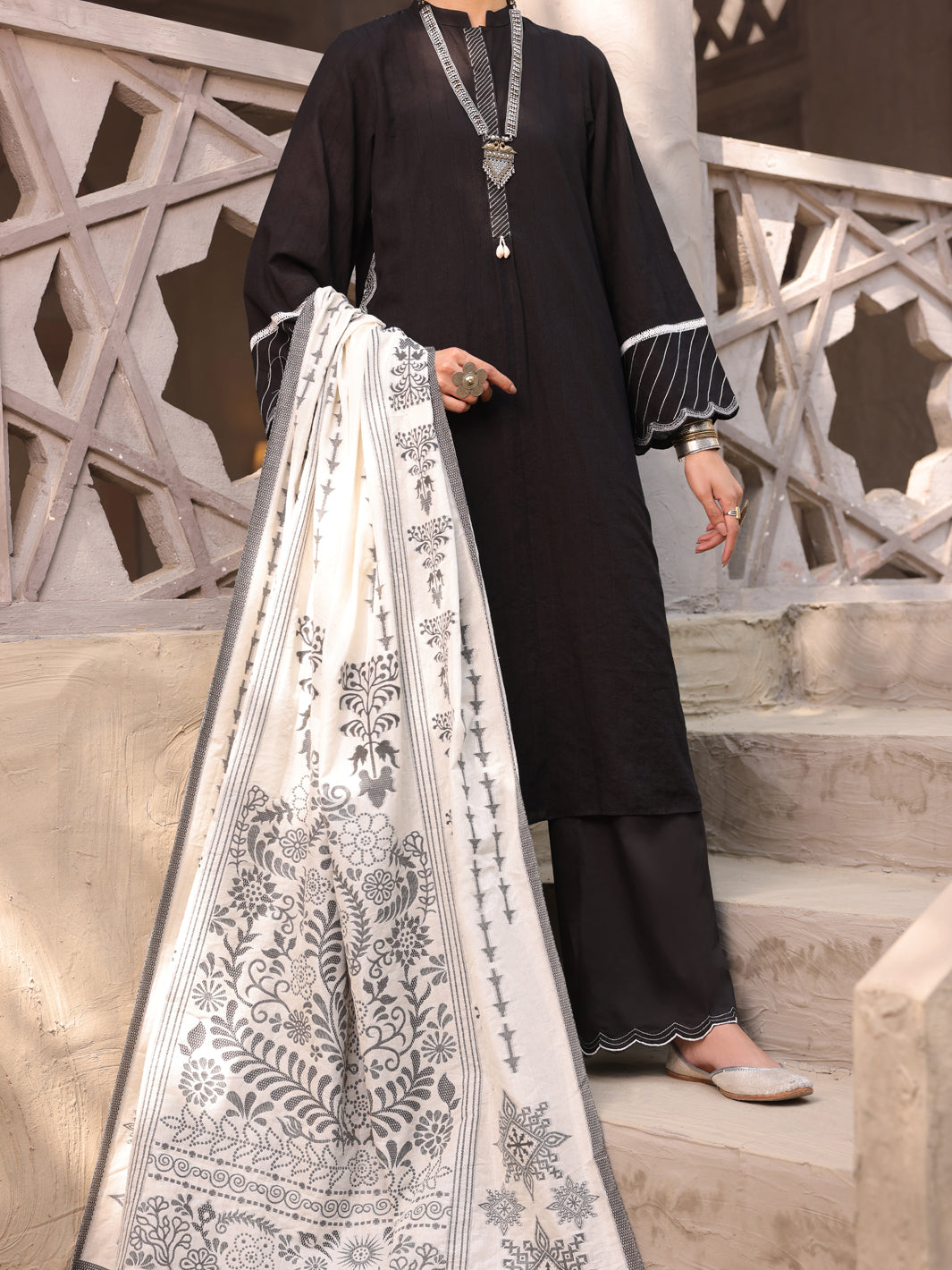 BLACK JACQUARD 3PC UNSTITCHED | ALP-3PS-AU-1629 FB-1629A