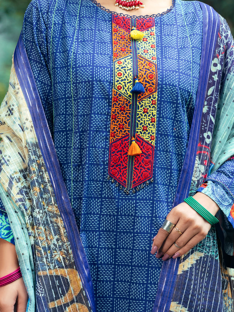 NAVY BLUE CAMBRIC 3PC UNSTITCHED | AWP-3PS-AU-546 FB-1638A