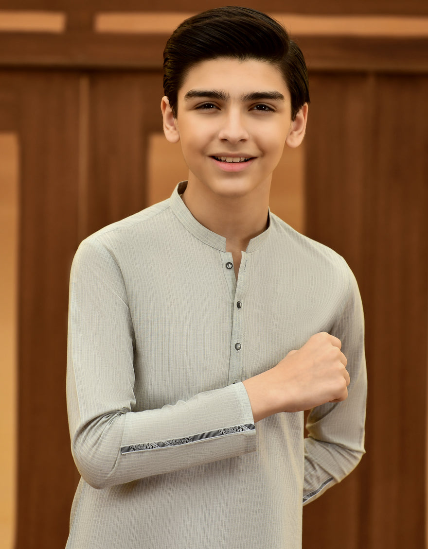 Plain Kurta For Kid, With Twill Tape On Sleeves