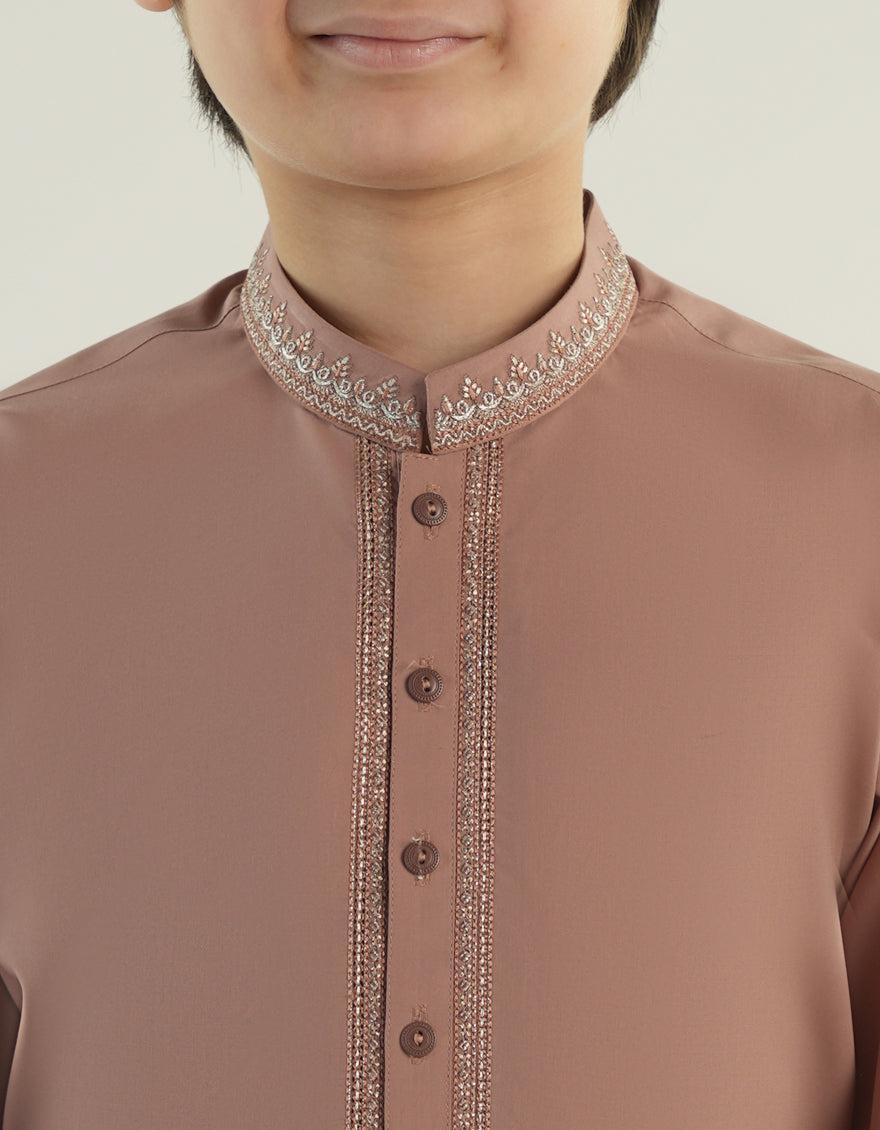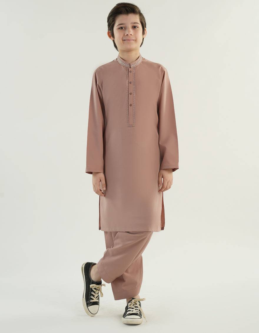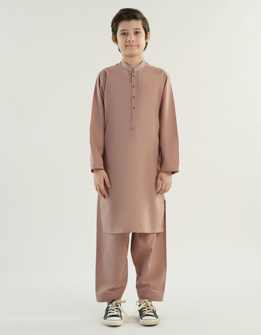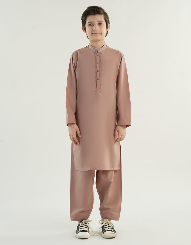 Made for the modern young man, this kameez shalwar is a perfect blend of style and comfort. Its simple yet elegant design makes it suitable for a range of occasions, ensuring that your little one looks his best.