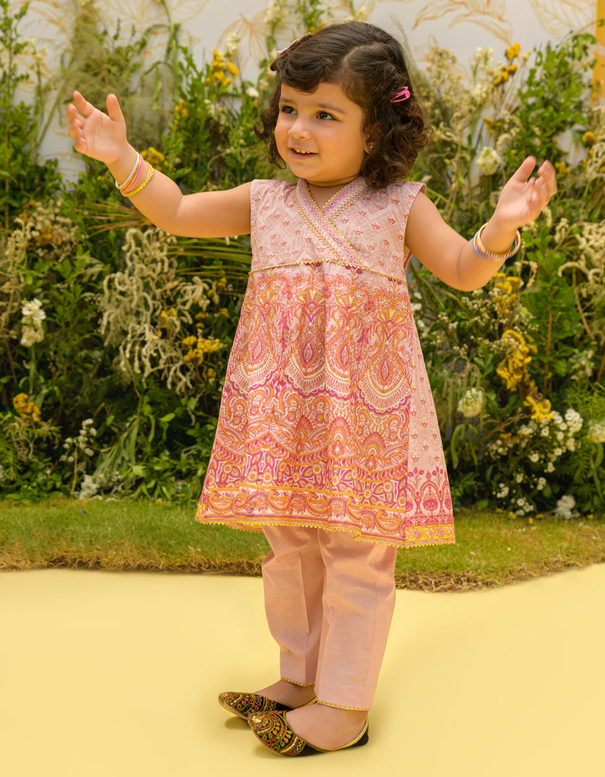 Neckline: Overlap Angrakha Style With Printed & Glitter Border
