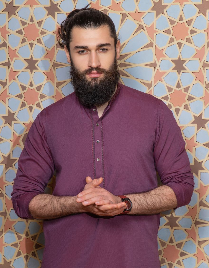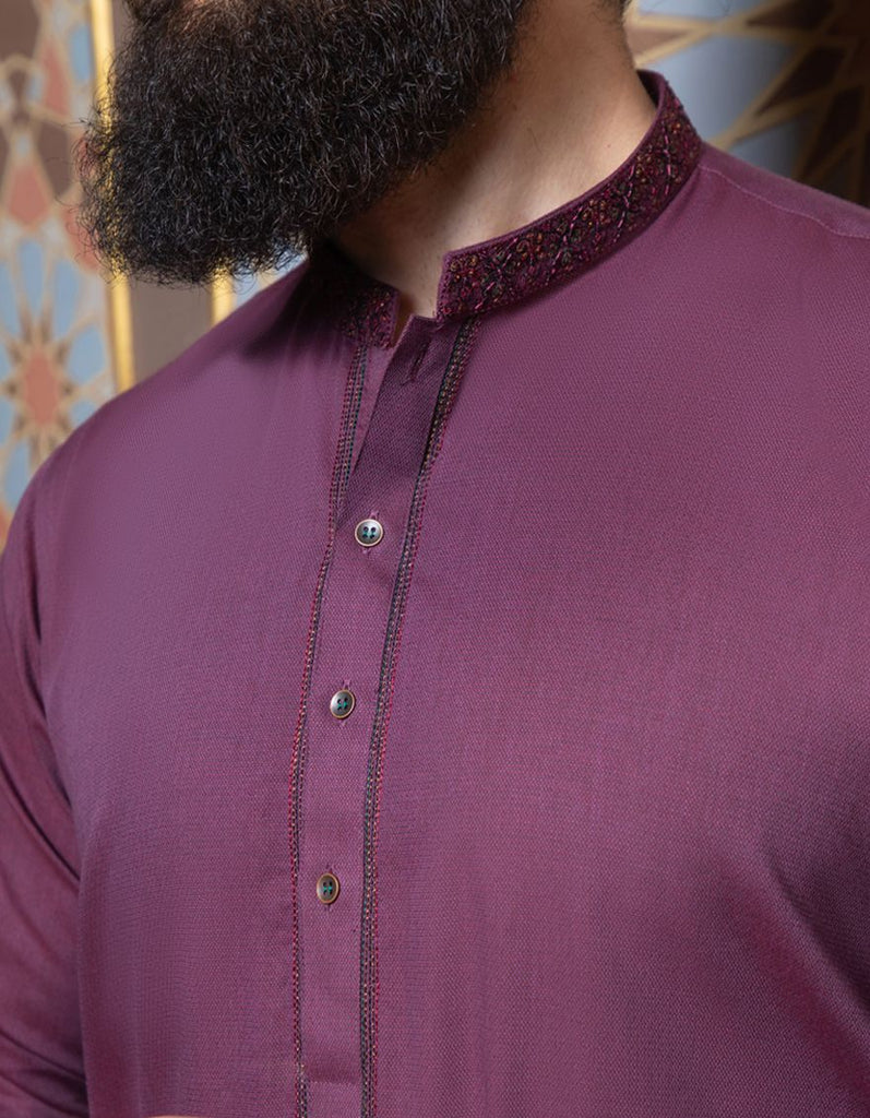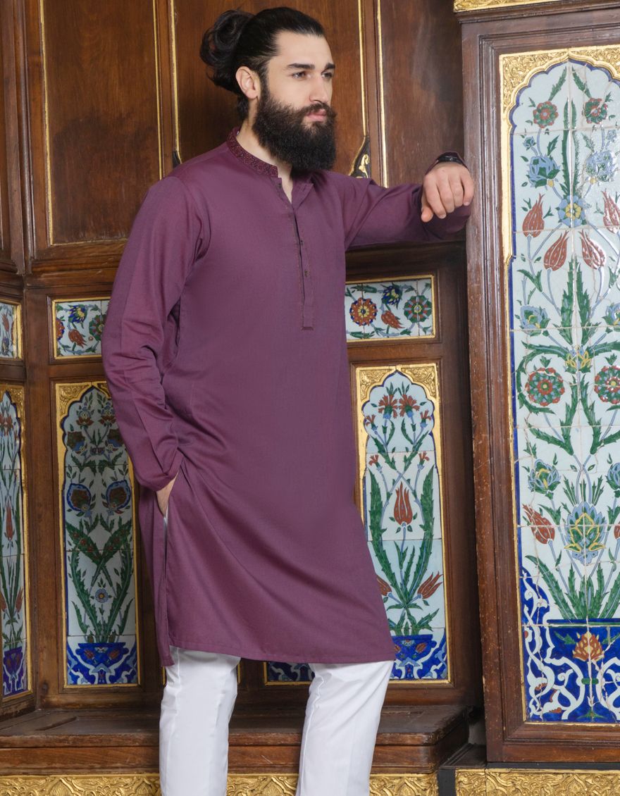Formal Kurta For Men With Hand Embroidery On Front Placket.