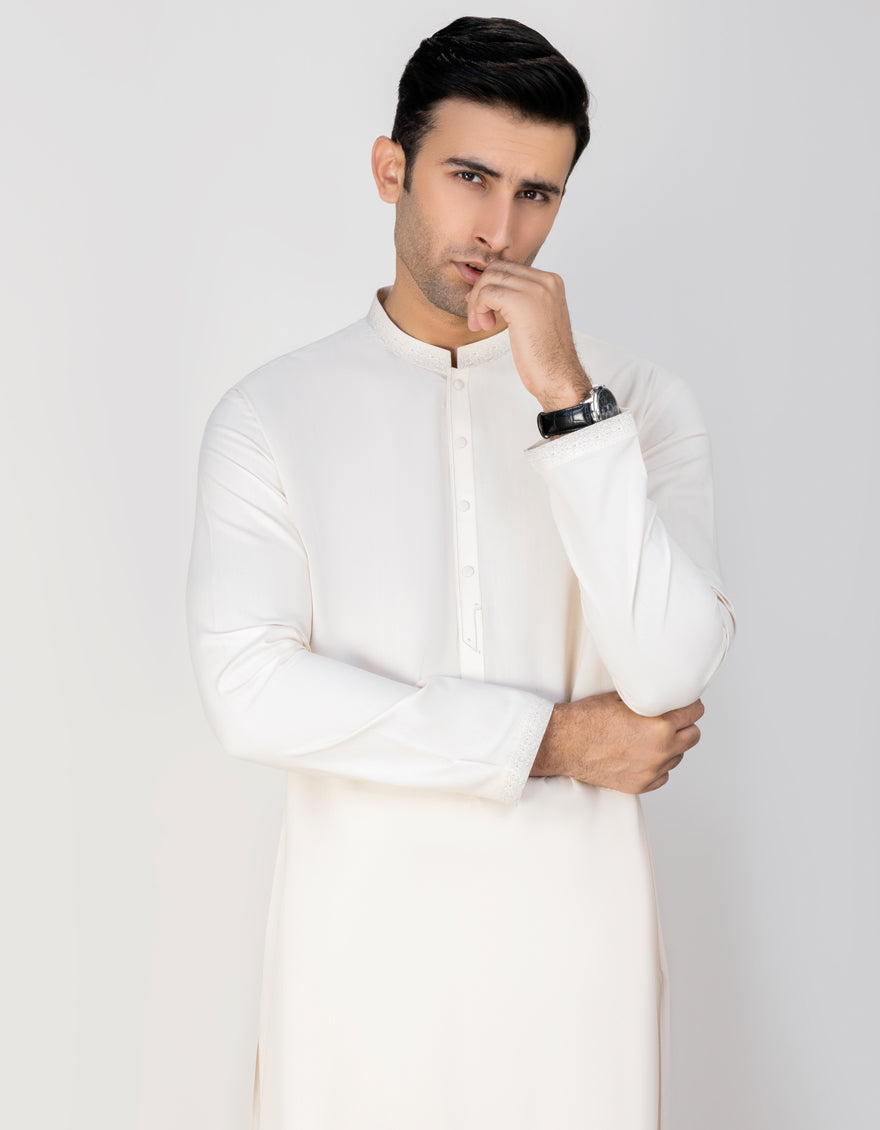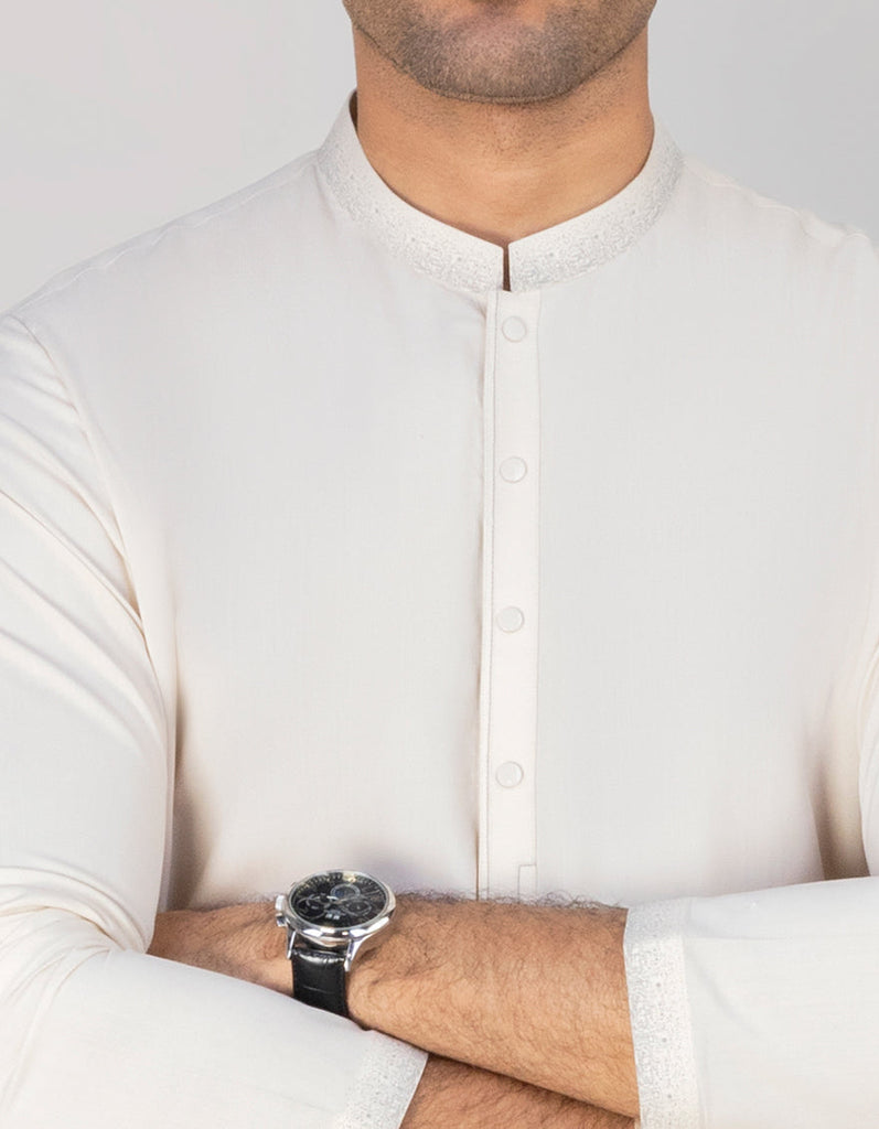 Semi-Formal Kurta for Men With Screen Print on Collar and Sleeves