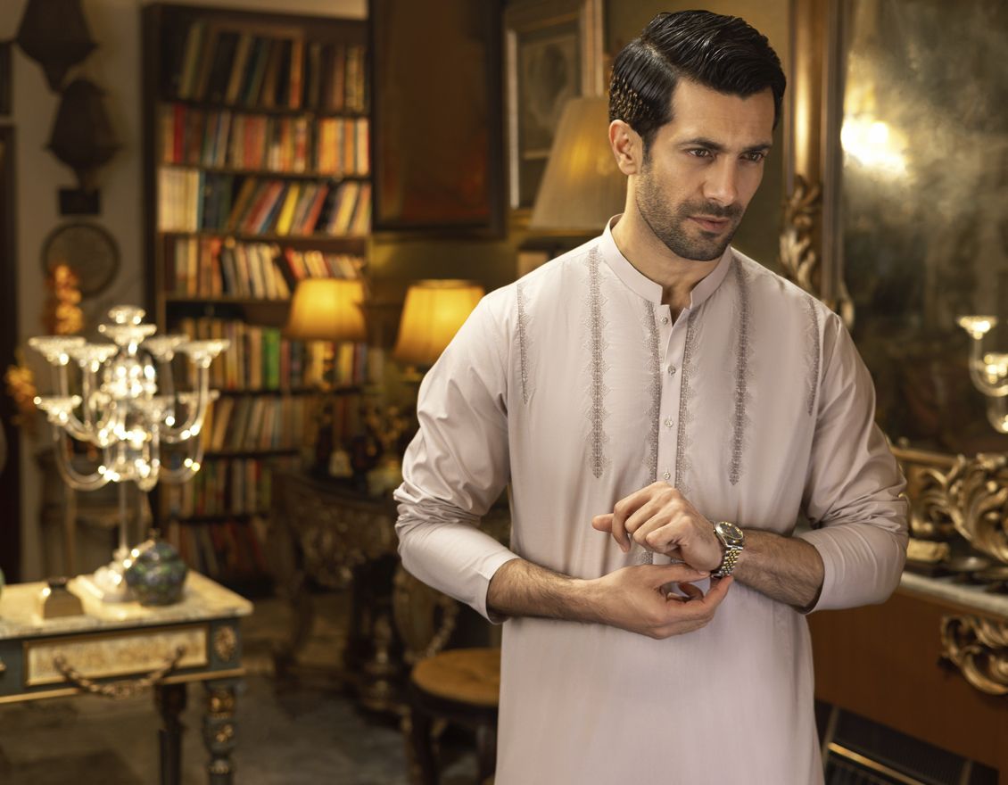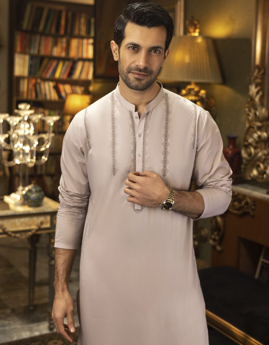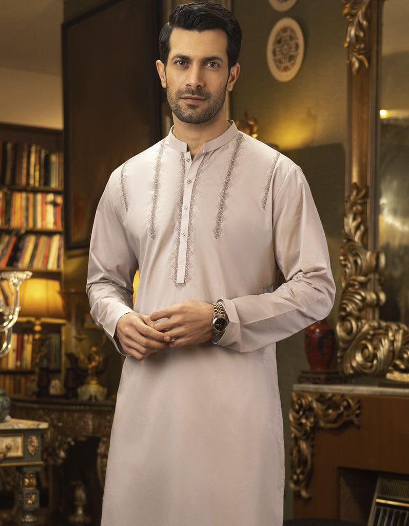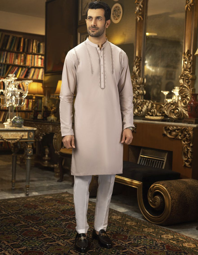 Semi-Formal Kurta For Men, With Embroidery On Front.