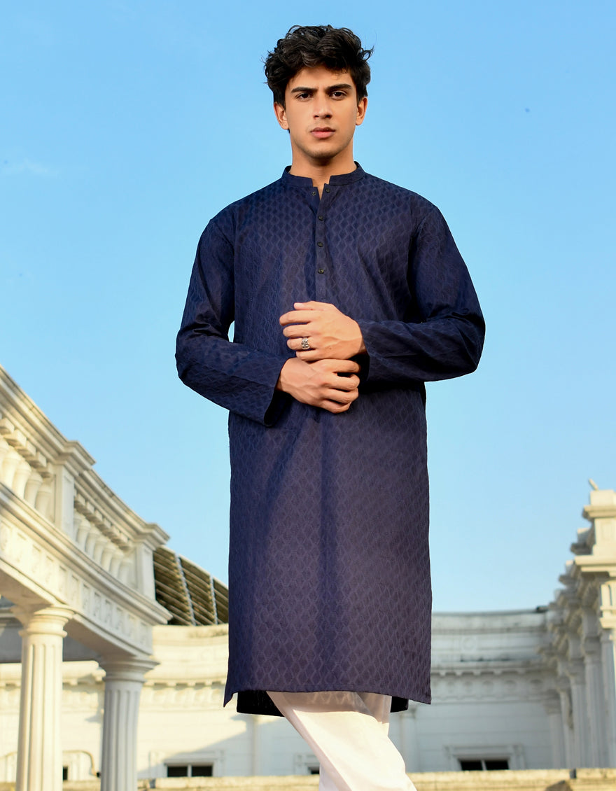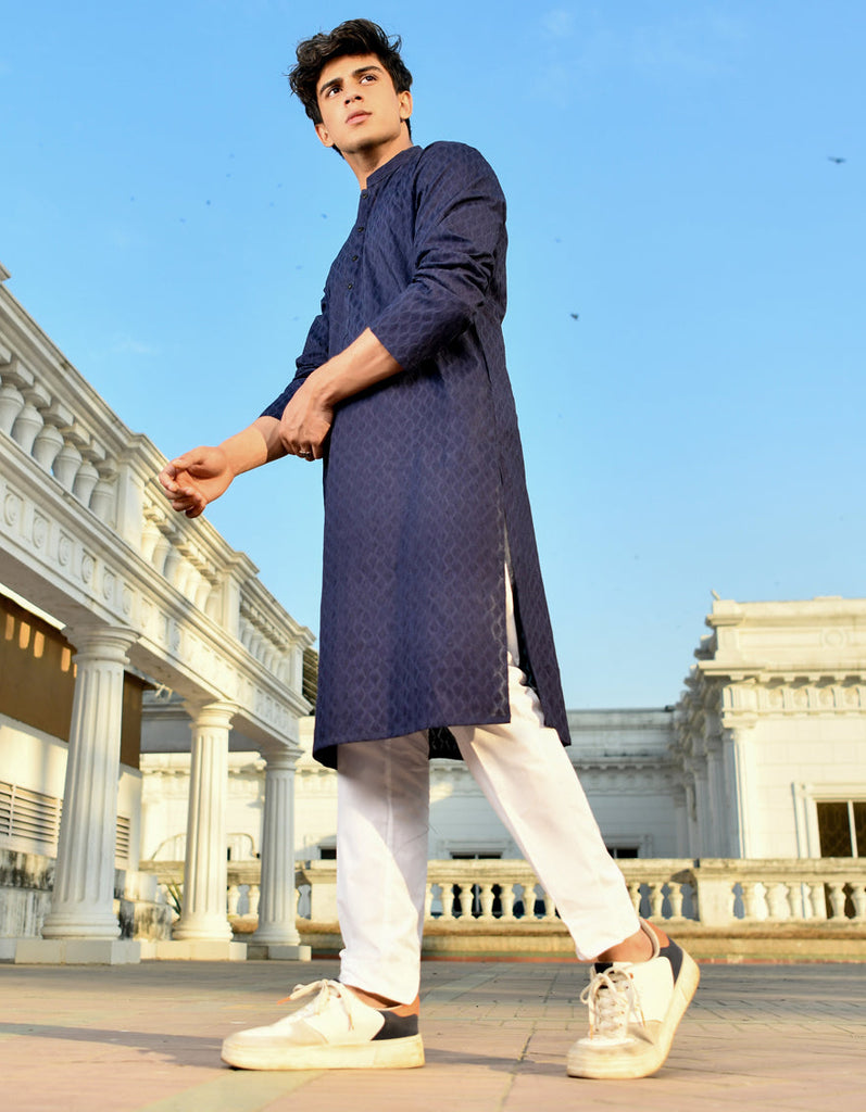 BLUE COTTON KURTA TROUSERS | JJKP-AU-45211/A23/JJ1099-CL