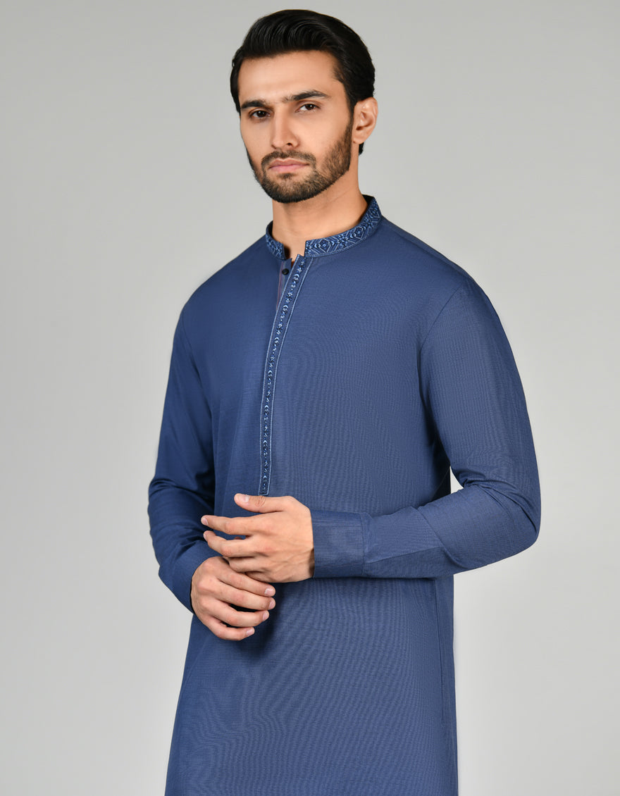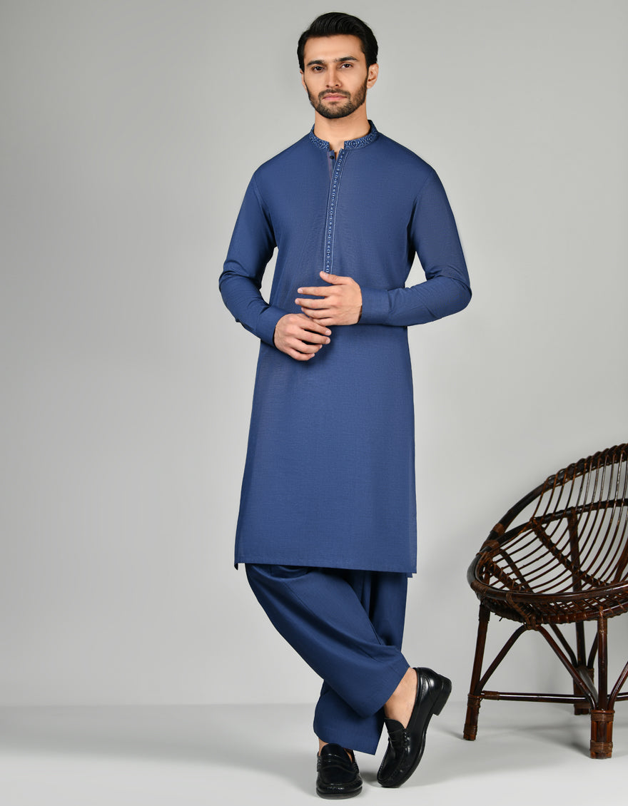Blue CVC Semi-Formal Kameez Shalwar For Men