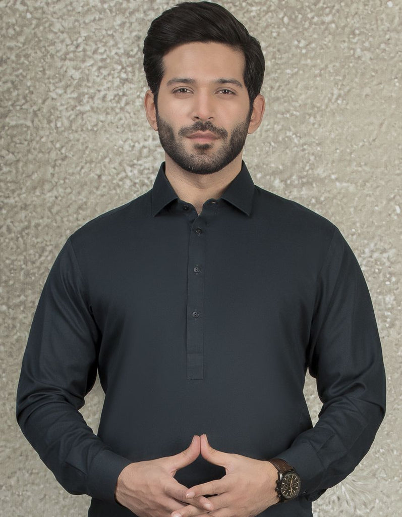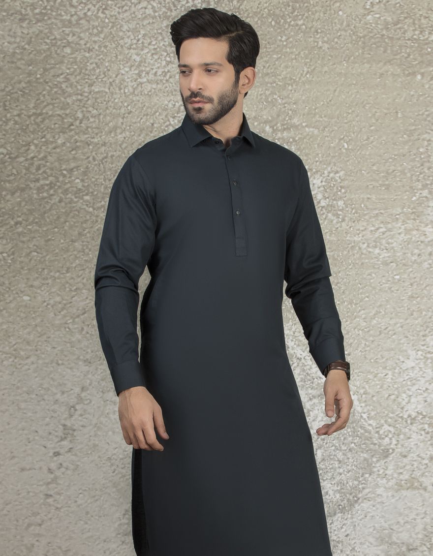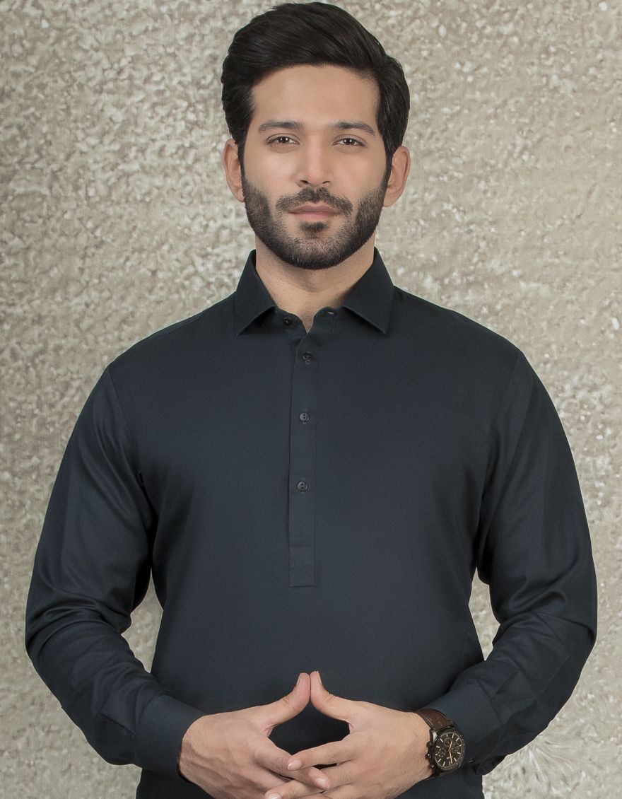 Plain Classic Fit Kurta For Men, Style With Stitching Detailed On Collar, Placket, Cuff And Shoulder.