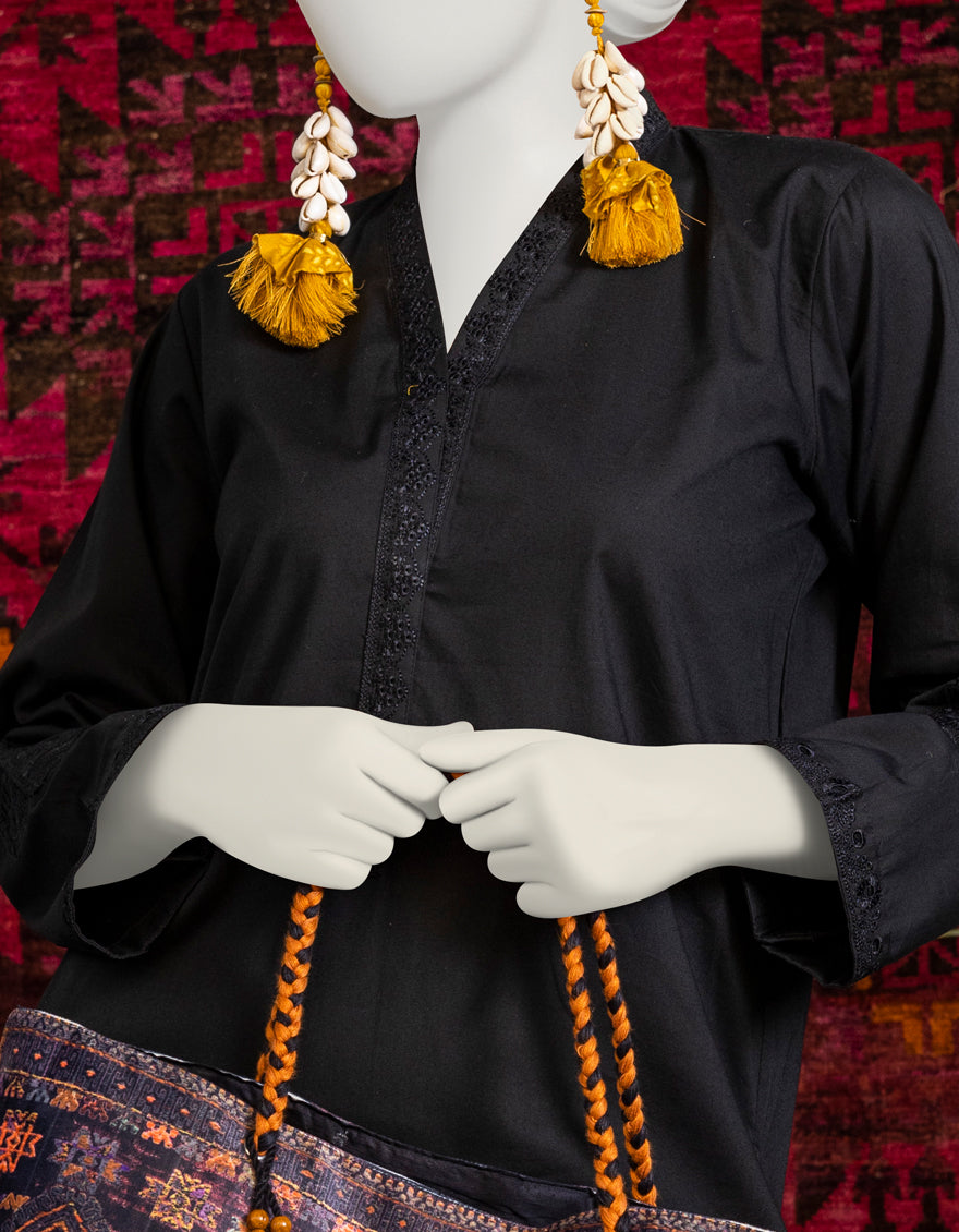 BLACK LAWN KURTI | JJLK-W-JPWK-AU-23-945 FB/RFD