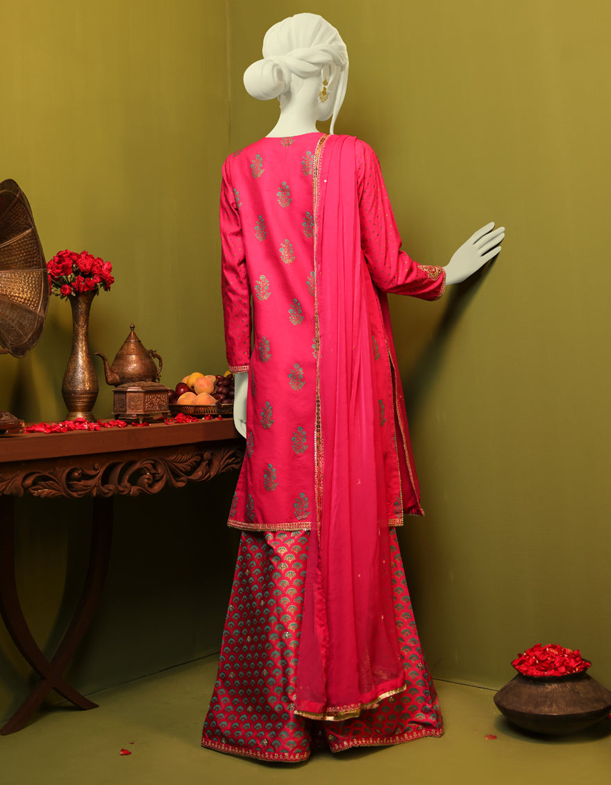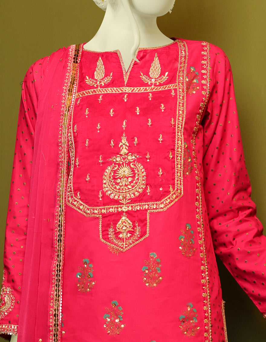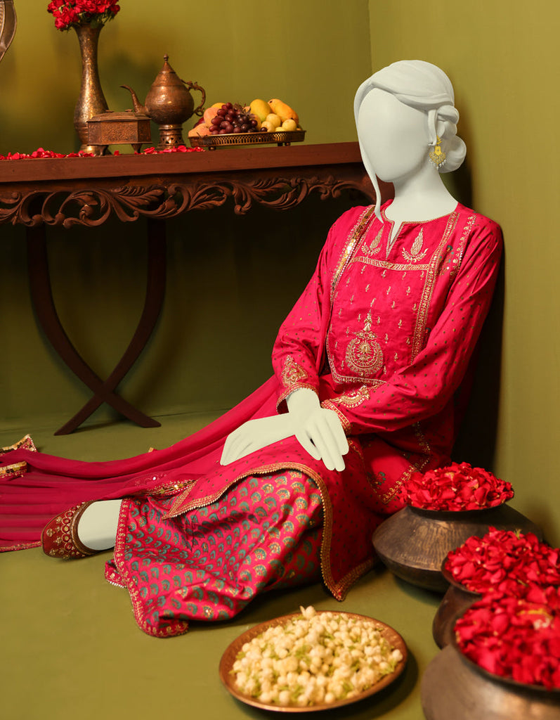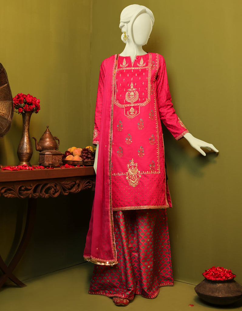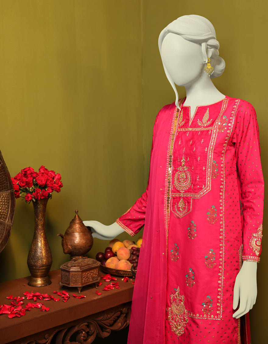 HOT PINK RAW SILK 3PC STITCHED | JJPW-S-JPS-AU-22-3925 FB/HF-138(MF-839)