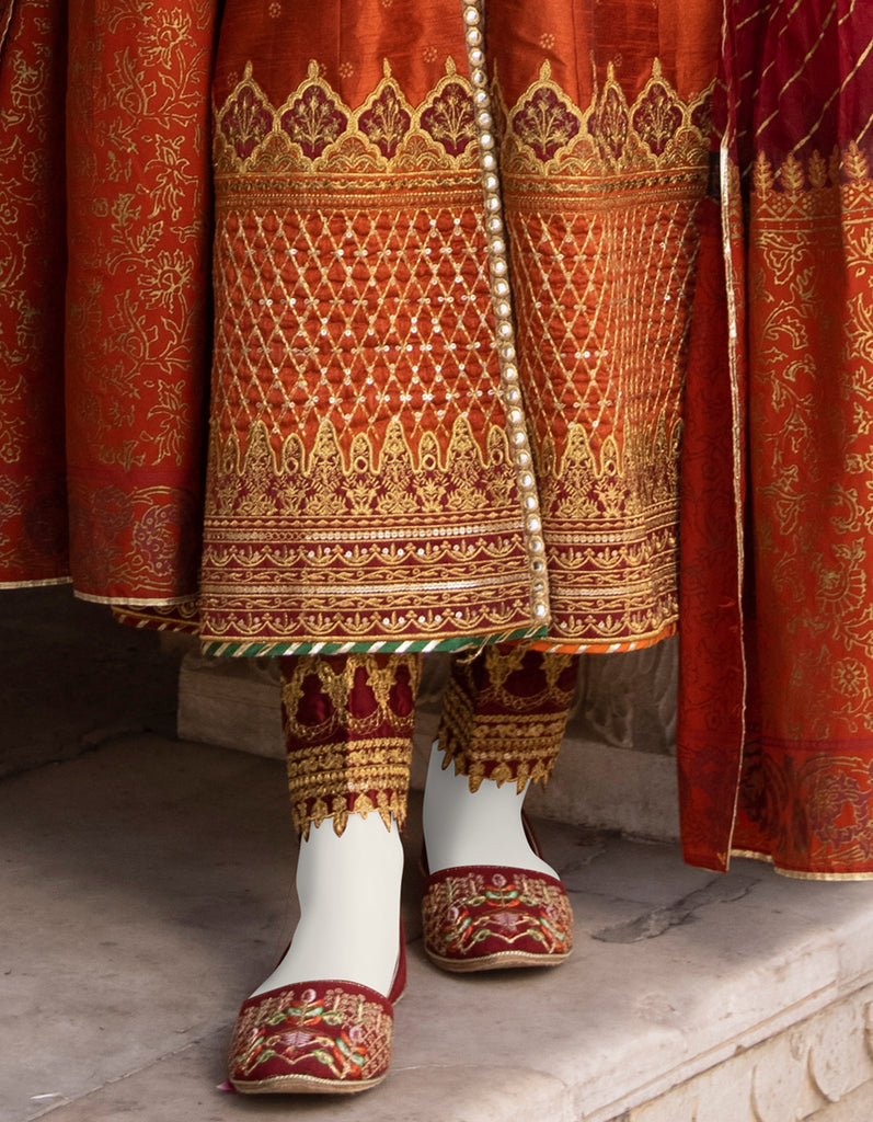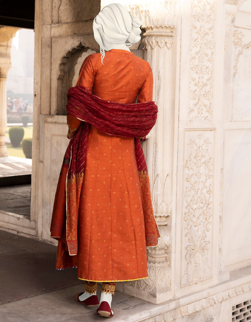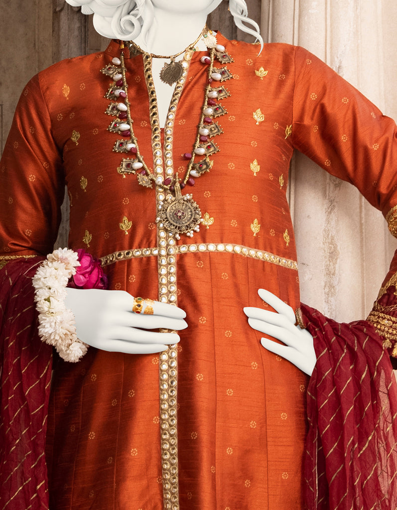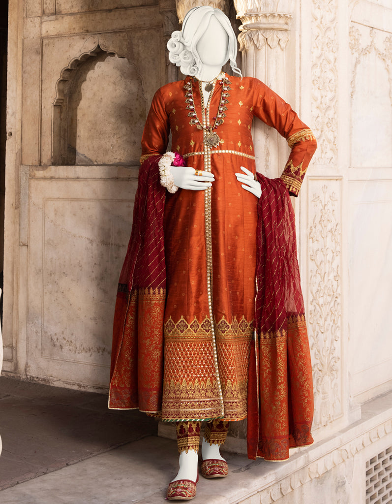 RUST RAW SILK 3PC STITCHED | JJPW-S-JPWF-AU-22-009 FB/FF-386