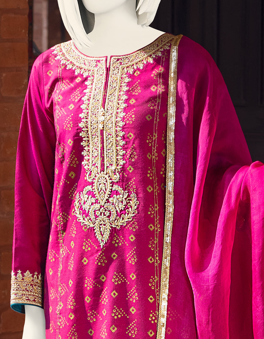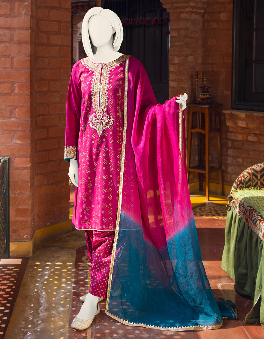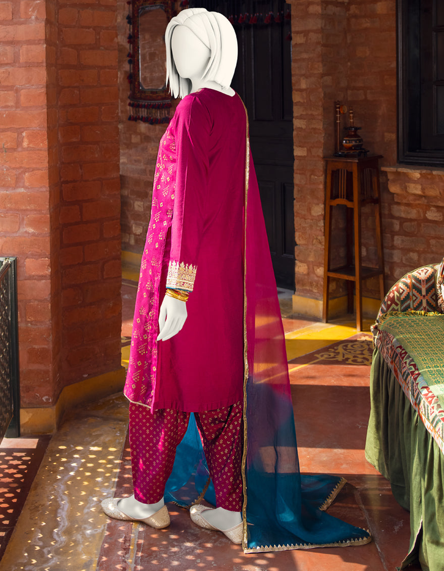 MAGENTA RAW SILK 3PC STITCHED | JJPW-S-JPWF-AU-22-027 FB/FF-035