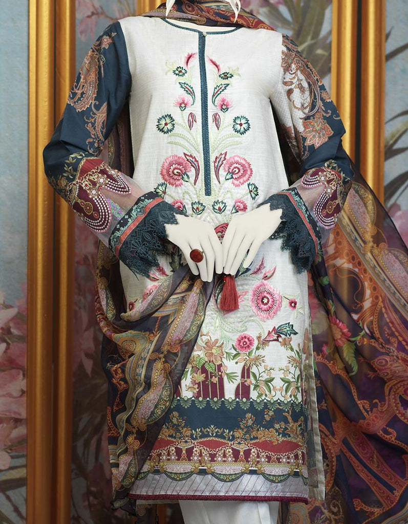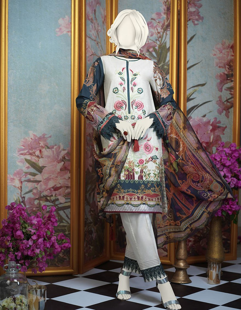 OFF WHITE LAWN 3PC STITCHED | JJPW-S-JPWS-AU-21-218 FB/CLASSIC TEAL