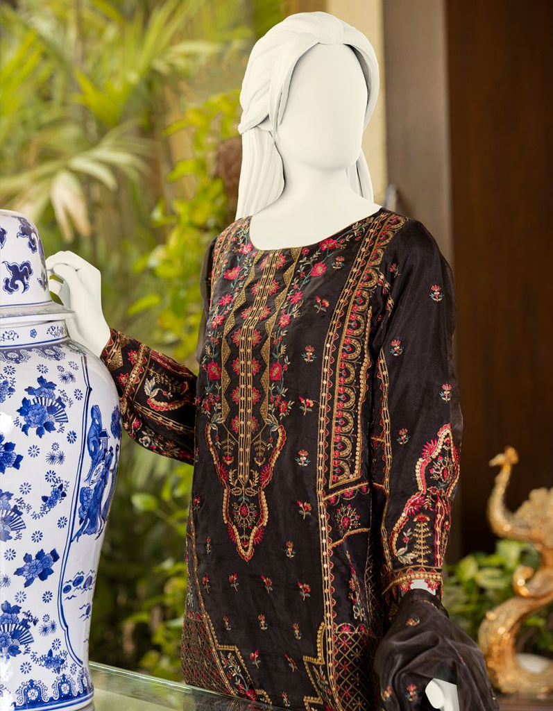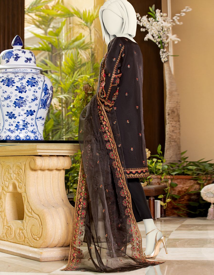 DARK BROWN ORGANZA 3PC STITCHED | JJPW-S-JPWS-AU-21-287 FB/AJ-005