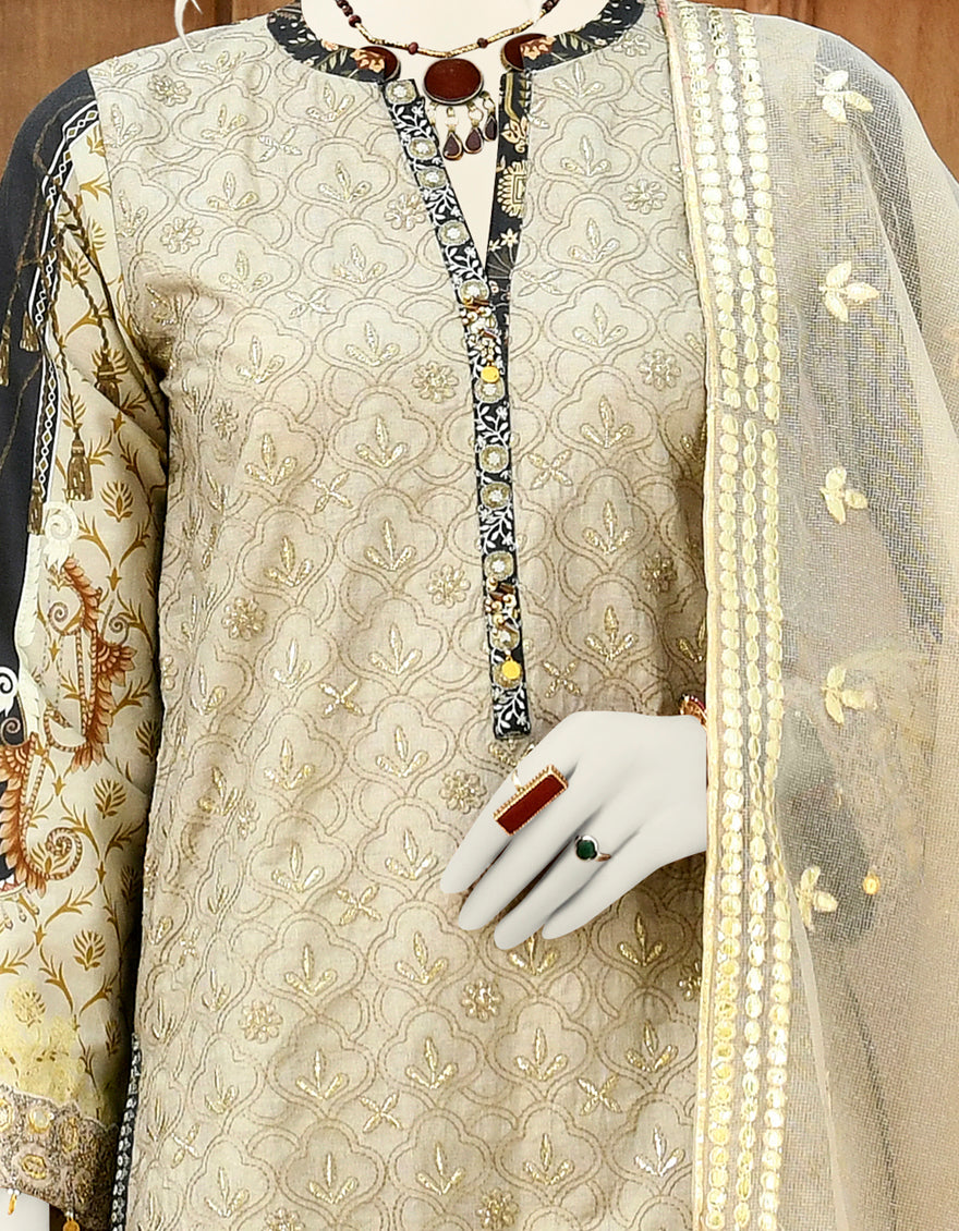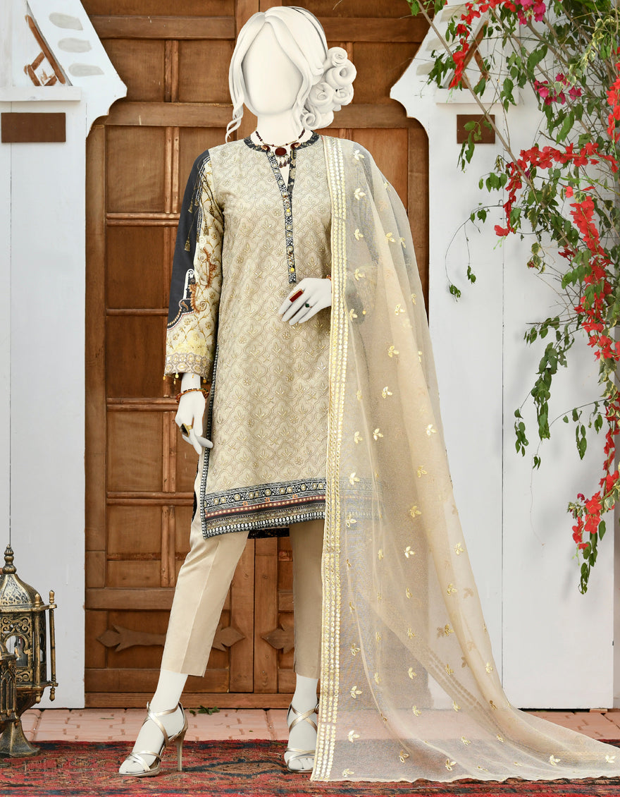 BEIGE CAMBRIC 3PC STITCHED | JJPW-S-JPWS-AU-22-305 FB/BAADIA