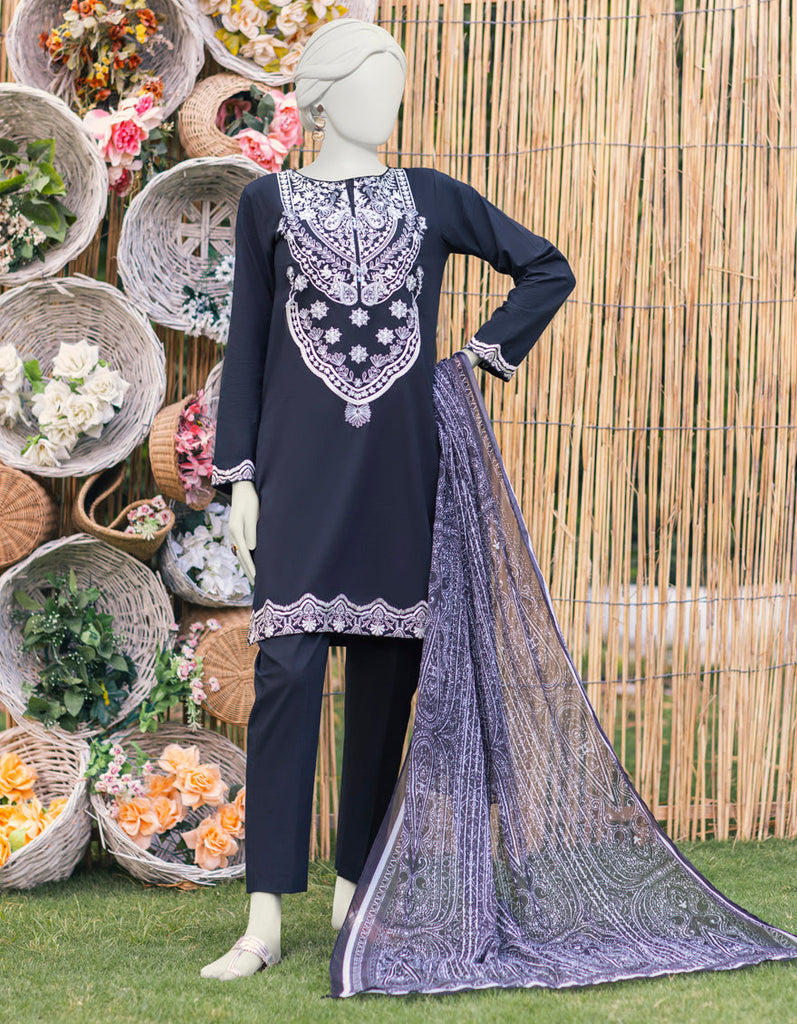 BLACK LAWN 3PC STITCHED | JJPW-S-JPWS-AU-23-569 FB/RFD