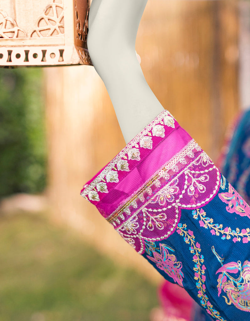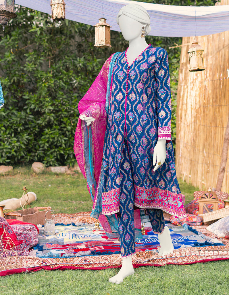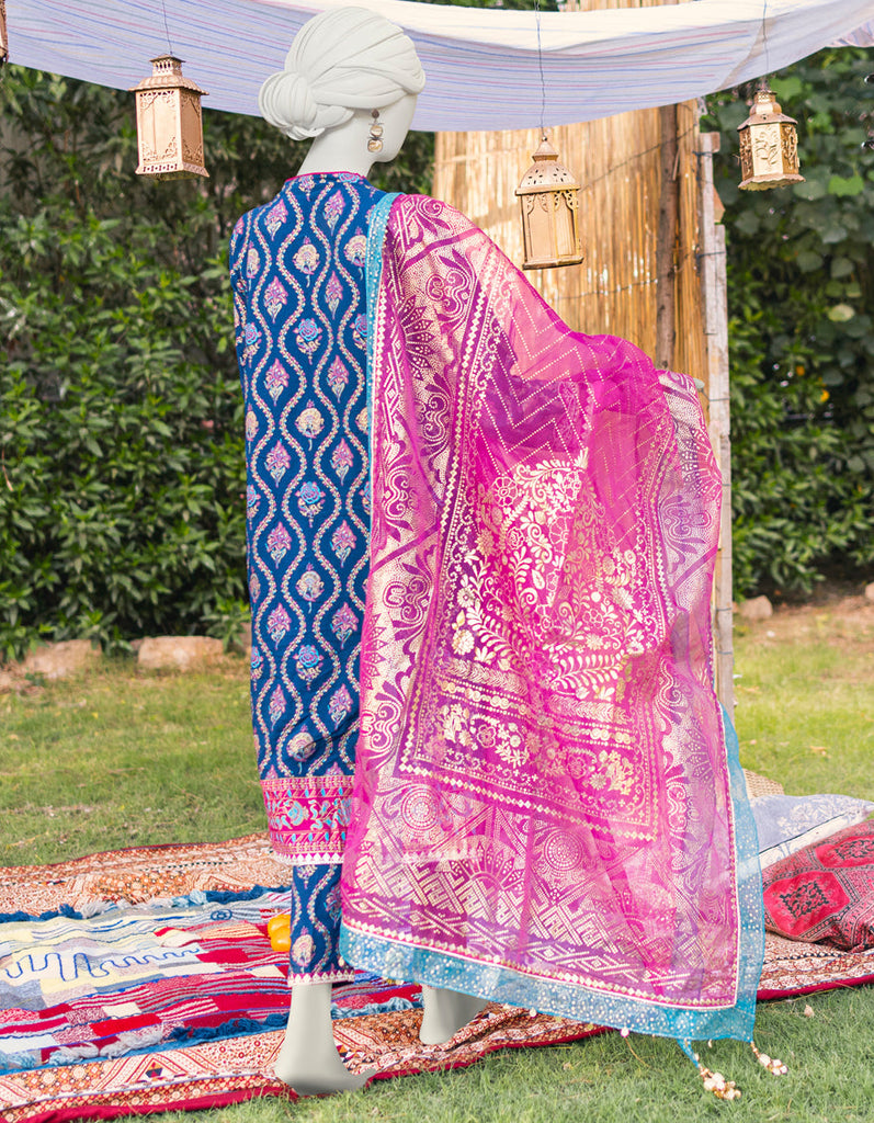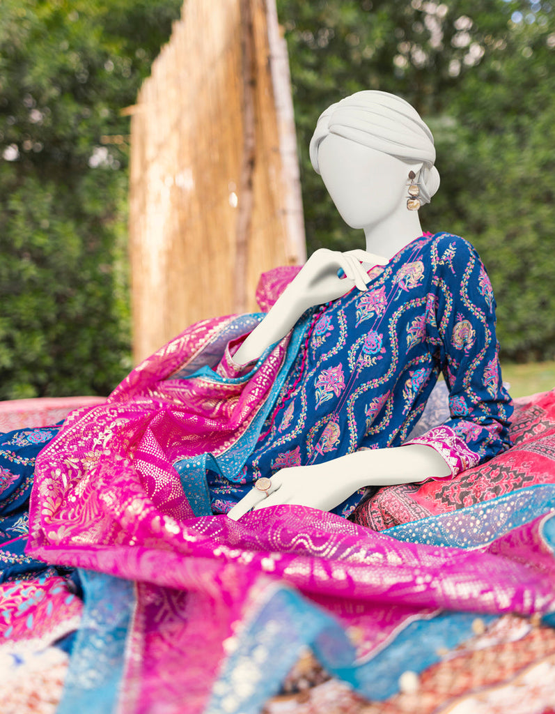 BLUE RAW SILK 3PC STITCHED | JJPW-S-JPWS-AU-23-592 FB/FF-272